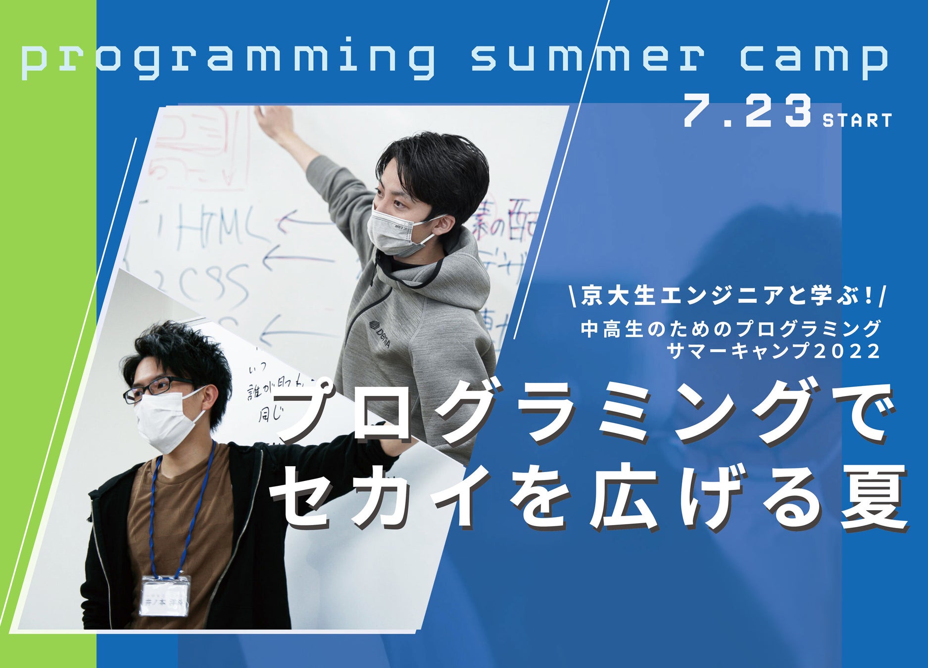 このたび、『プログラミングサマーキャンプ2022 <プログラミングでセカイを広げる夏> 』を準備して、多くの中学生高校生に今、注目のITスキルを現役の京大生エンジニアから直接学ぶ機会を提供してまいります。
