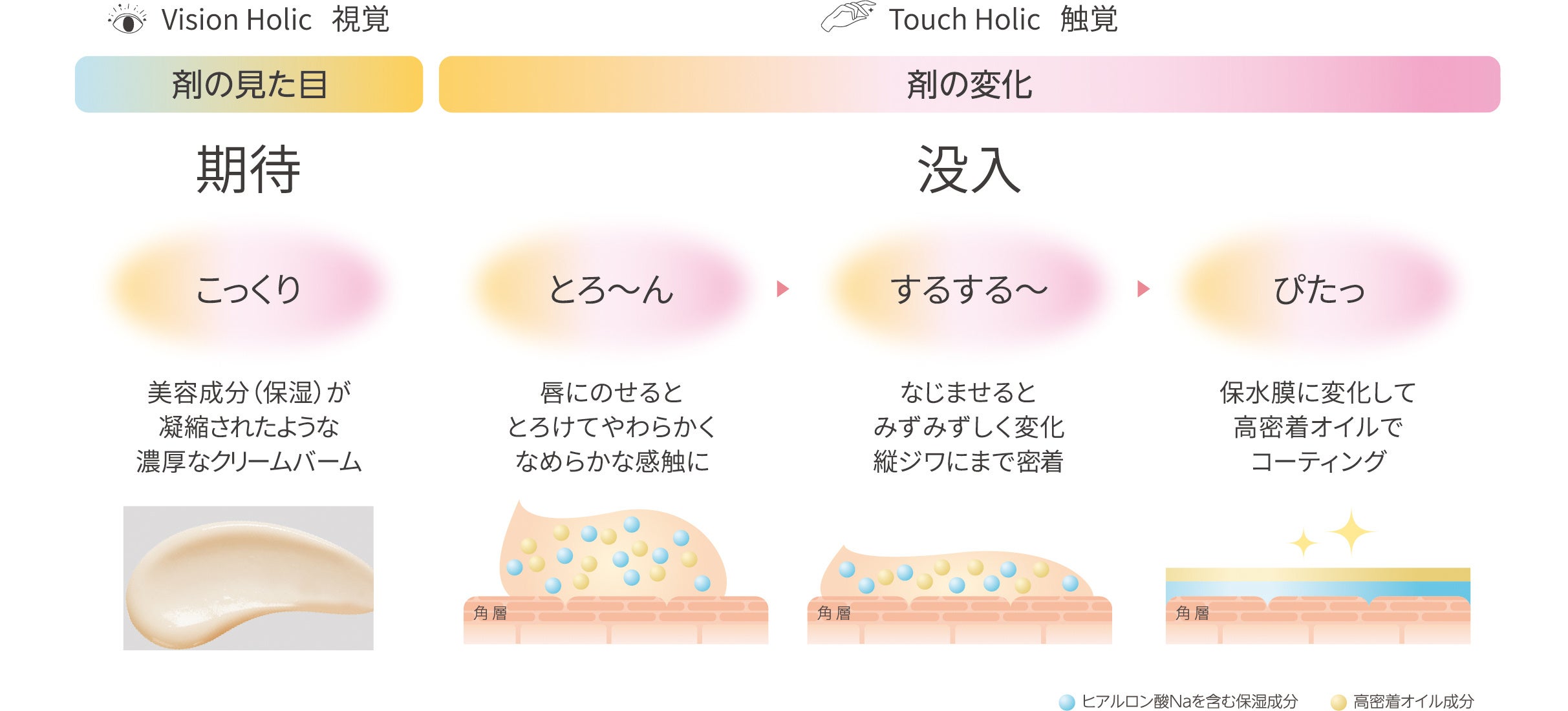 ◆ヒアルロン酸※1配合の保水膜で、唇・口周りの肌を包み込み、うるおってぷるんと明るい口もとへ導く