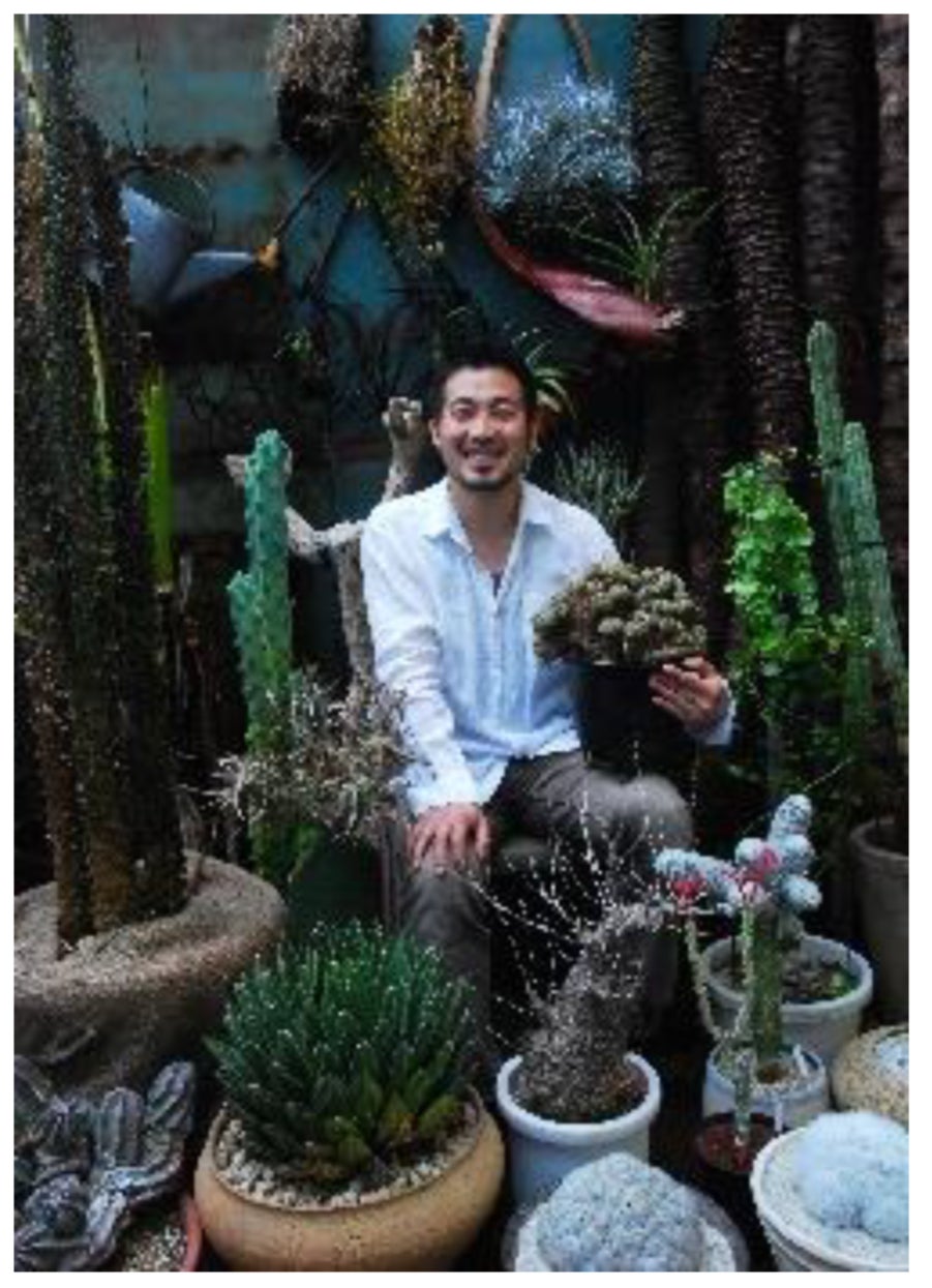 1976年、広島生まれ。世界中を旅する暮らしをしていた20代の頃、旅先で訪れたパリで、フラワーアーティストがセレクトショップの空間演出を手掛ける様子に感動。帰国後、生花と観葉植物による空間デザインに取り組むようになる。数年がたち、画一的な花や植物での表現に限界を感じ始めていた頃、ある世界的アートコレクターと出会い、納品後に傷ついた植物を見て発した彼の一言、「闘う植物は美しい」に衝撃を受ける。以来、植物選びの基準を、整った美しさから、『いい顔』をしているかどうかに変える。独自の視点で植物を捉え、美しさを見出した一点物の植物を扱うことを決心し、2012年、独自の美しさを提案する植物屋「叢 - Qusamura」をオープン。