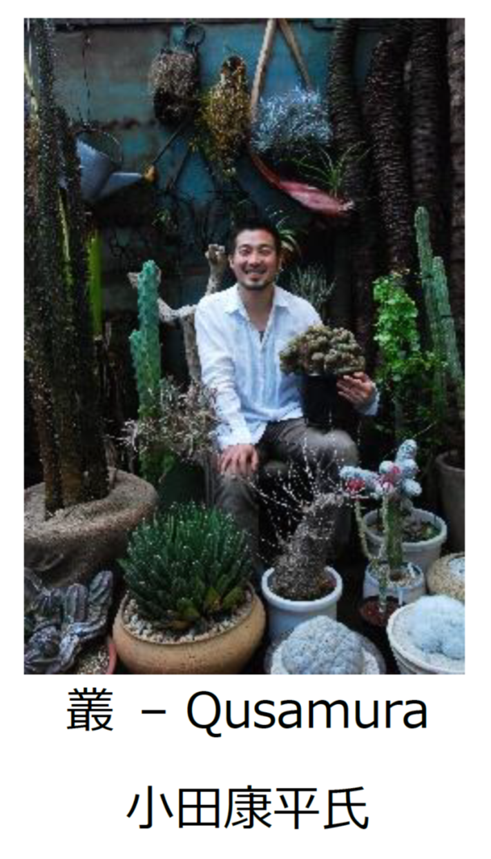 〝いい顔してる植物〟をコンセプトに、独自の美しさを提案する植物屋。店主みずからが日本中を旅して集めた個性あふれる植物を、その個体の特徴を引き出す器とあわせて提案する。店名は、店主が植物を見つける場所を叢と呼んでいたことから、普通の人にとってはただの草の群がりに見える場所に、個性ある美しさが眠っていることがある。『Qusamura』の〝Q〟は、「Question」からとったもの。個性的な叢の植物たちに出合ったとき「これ、なに?」と、はじめに不思議を感じ、「?」から叢の世界観に入ってほしいという願いを込めている。