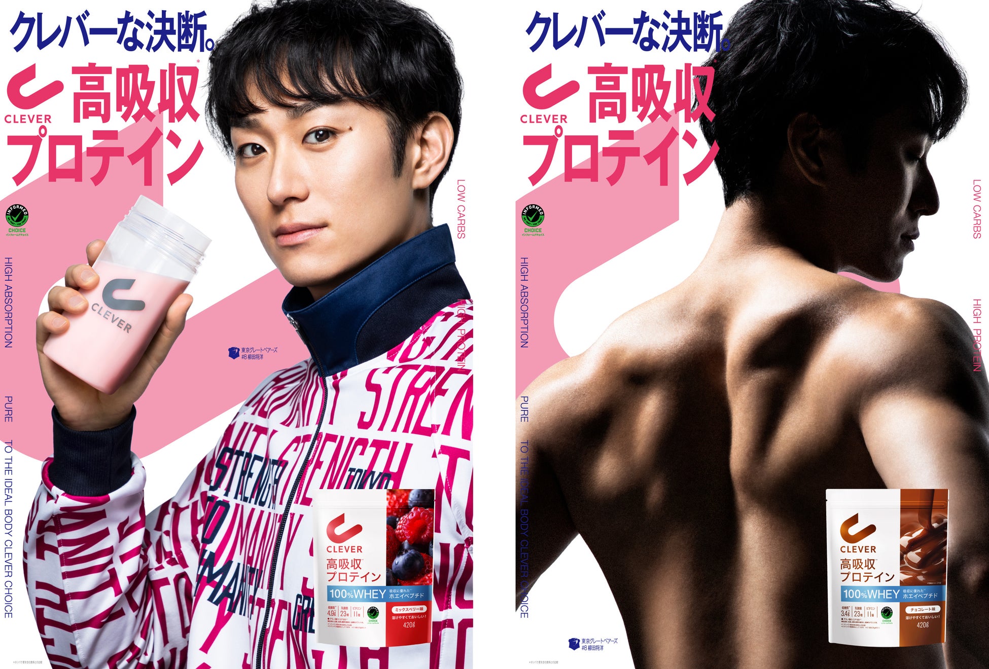 オリジナルブランドムービーも同時公開し、柳田選手のダイナミックなプレーと、『クレバー 高吸収*プロテイン』が持つ「吸収効率」「パフォーマンス向上」のメッセージを融合させた映像表現となっています。