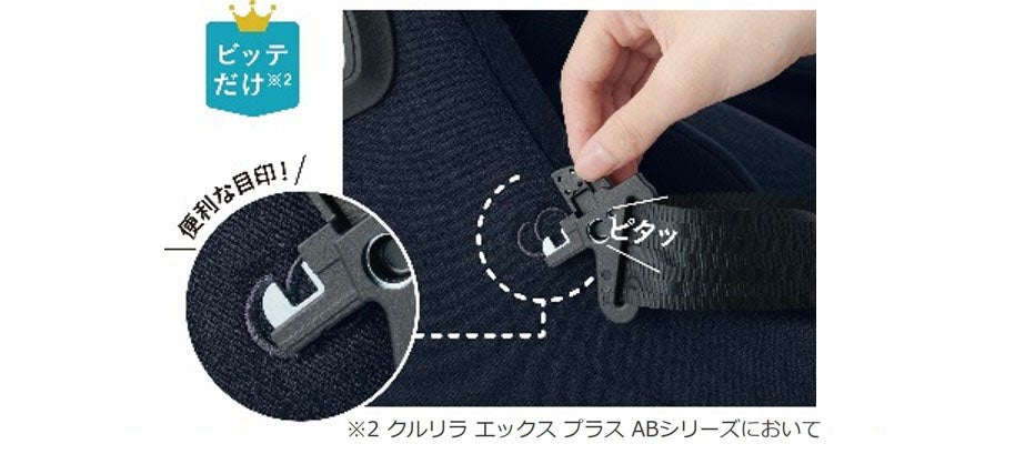マグネットで、肩ベルトを開いた状態にキープできるので、ベルトが邪魔にならず乗せ降ろしスムーズです。