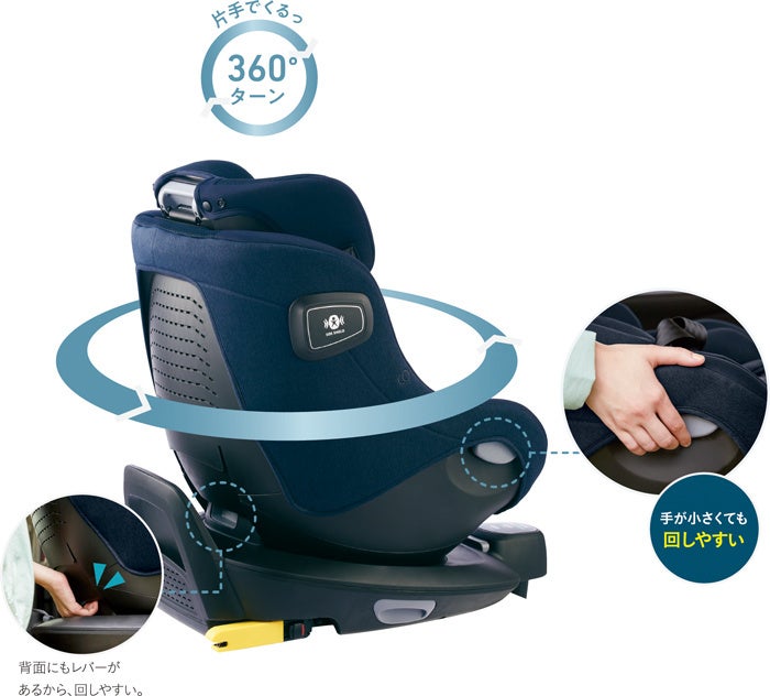 ドア側に回すとシートが簡易的にロックされるので、赤ちゃんの乗せ降ろしがしやすくなります。