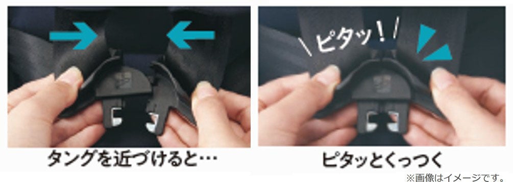 マグネットでタング同士がピタッとくっつくので急いでいる時や赤ちゃんがぐずっている時にも、もたつかず装着できます。