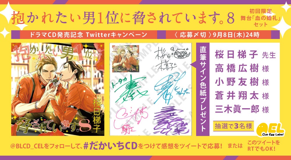 Twitterキャンペーン開催決定!ドラマCD「抱かれたい男1位に脅されています。8」が明日8月26日発売! 初回限定ミニドラマCDのジャケット&特典画像も公開中♪