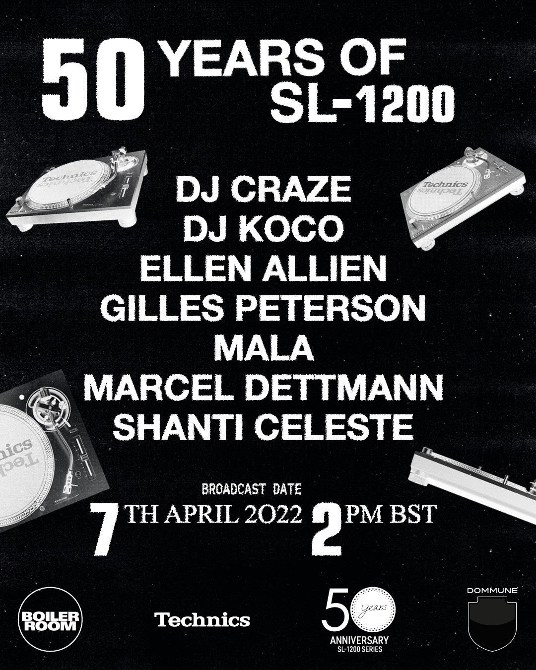 22:00 ~ BOILER ROOM x DOMMUNE x Technics “50 years of SL-1200s”