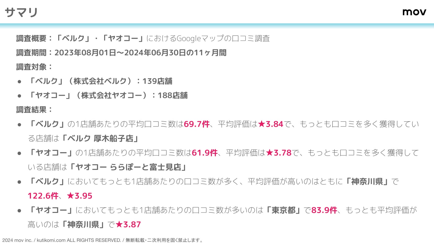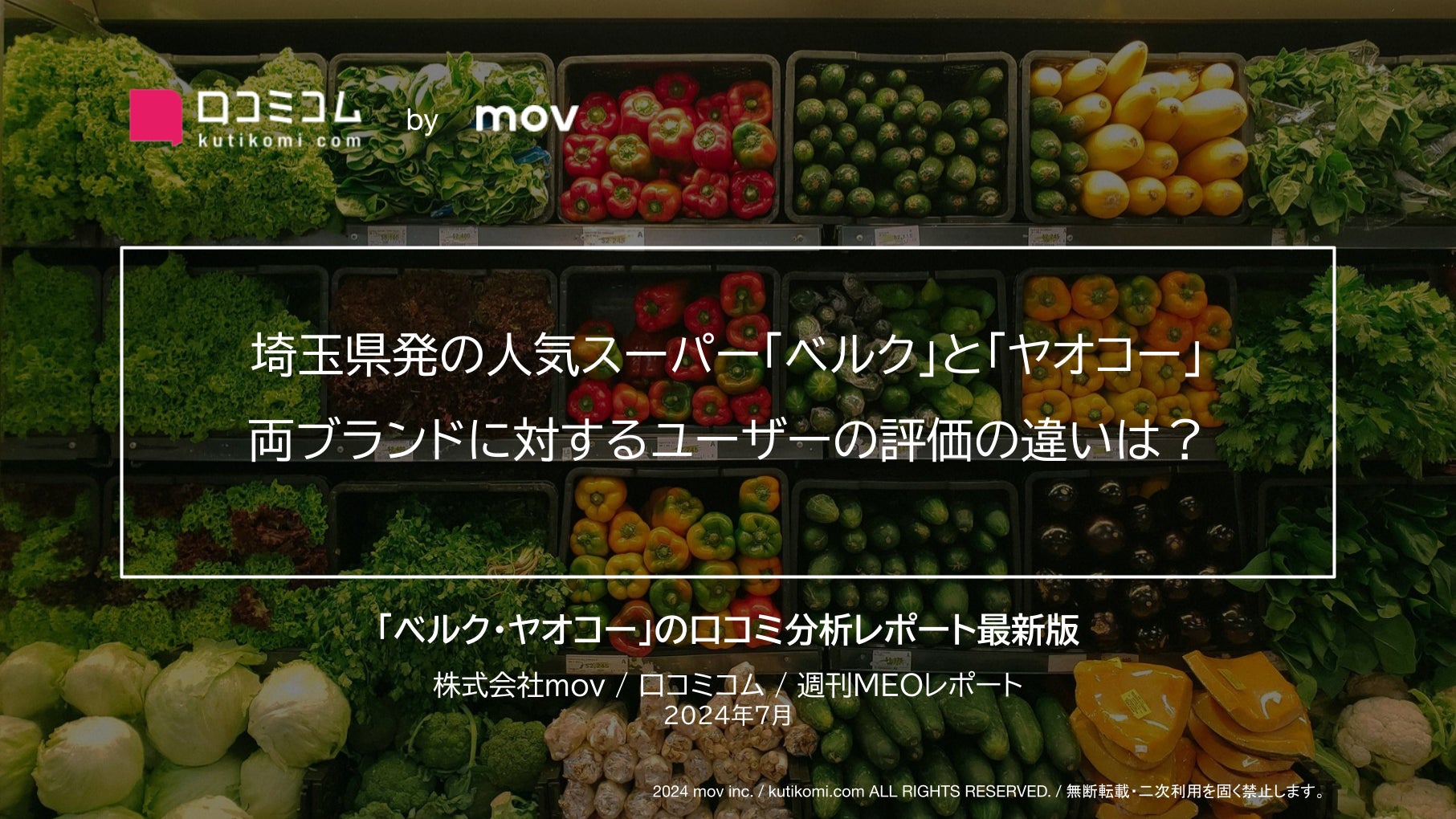 AI店舗支援SaaS「口コミコム」を運営する株式会社mov(代表取締役:渡邊 誠、本社:東京都渋谷区、以下mov)では、『口コミコム』の分析機能を用いたレポートを公開しました。