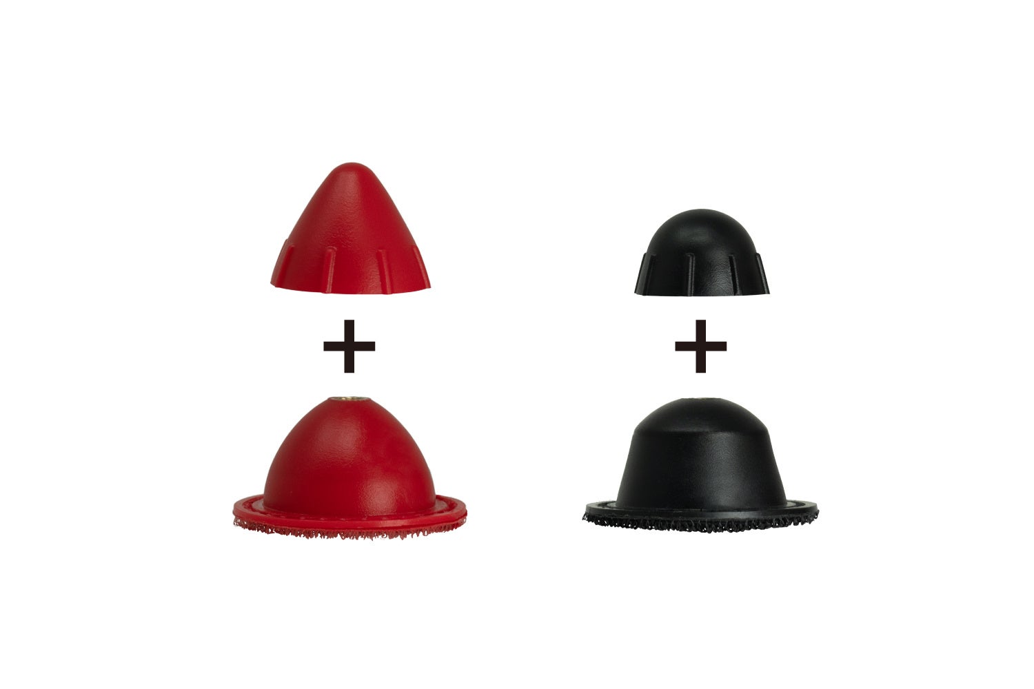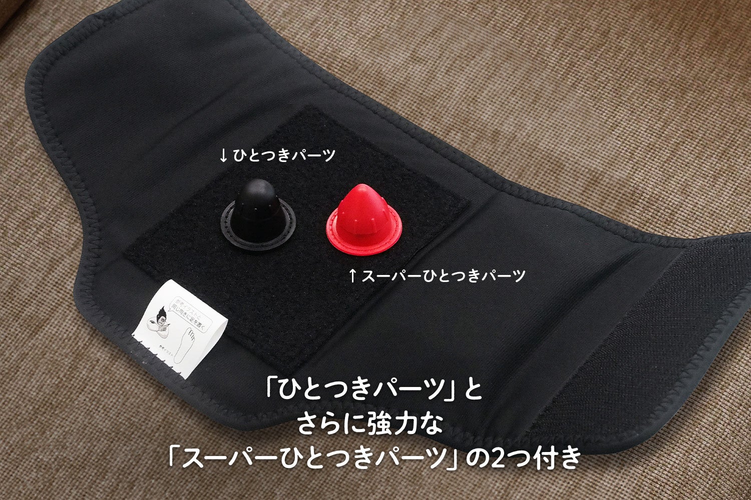 本製品は面ファスナーの上にひとつきパーツをつけ、エアバッグで押しあげることで足裏をケアできます。通常版のひとつきパーツの他、更にするどくなった「スーパーひとつきパーツ」の2種を付属しています。※通常版ではひとつきパーツのみの1つを付属しています。