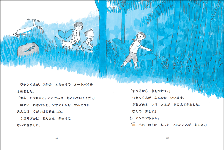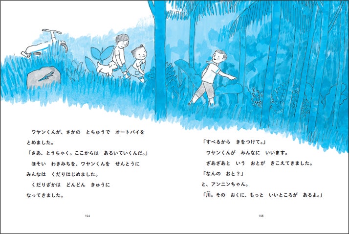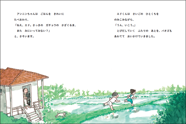 アンニンちゃんとパオズの毎日は、素敵な体験がつまっています。おとなたちに見守られながら、アンニンちゃんの世界はぐんぐん広がって、エドくん、ワヤンくんという素敵なともだちができます。のびやかで、気持ちよい読後感を味わえる作品です。