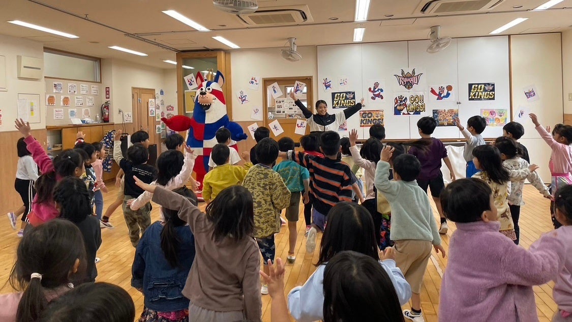 今回訪問した園では、キングスやゴーディーにまつわるクイズや、ダンスを通して体を動かすことの楽しさを体験しながら、園児たちと交流を深めました。