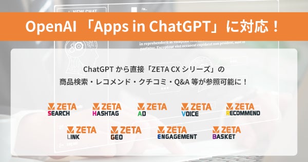 CX向上生成AIソリューション「ZETA CXシリーズ」を提供し、顧客体験価値の向上を支援するZETA株式会社(本社:東京都世田谷区、以下ZETA)は、サイト内検索・EC商品検索エンジン「ZETA SEARCH」をはじめとする製品群が、OpenAI, Inc.(OpenAI Group PBC、本拠地:アメリカ合衆国カリフォルニア州サンフランシスコ、代表者:CEO Sam Altman、以下「OpenAI」)が2025年10月から提供しているChatGPT内アプリ機能「Apps in ChatGPT」(※1)に対応したことをお知らせいたします。