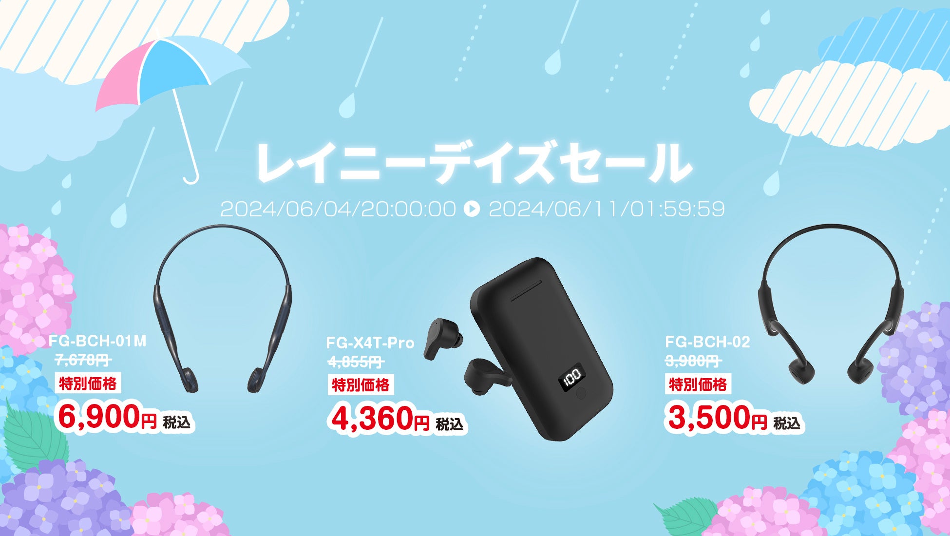 充電ケースがモバイルバッテリーになる無線充電対応の完全ワイヤレスイヤホン FG-X4T-Pro 通常価格 税込4,855円 → 10%OFFセール価格 税込4,360円
