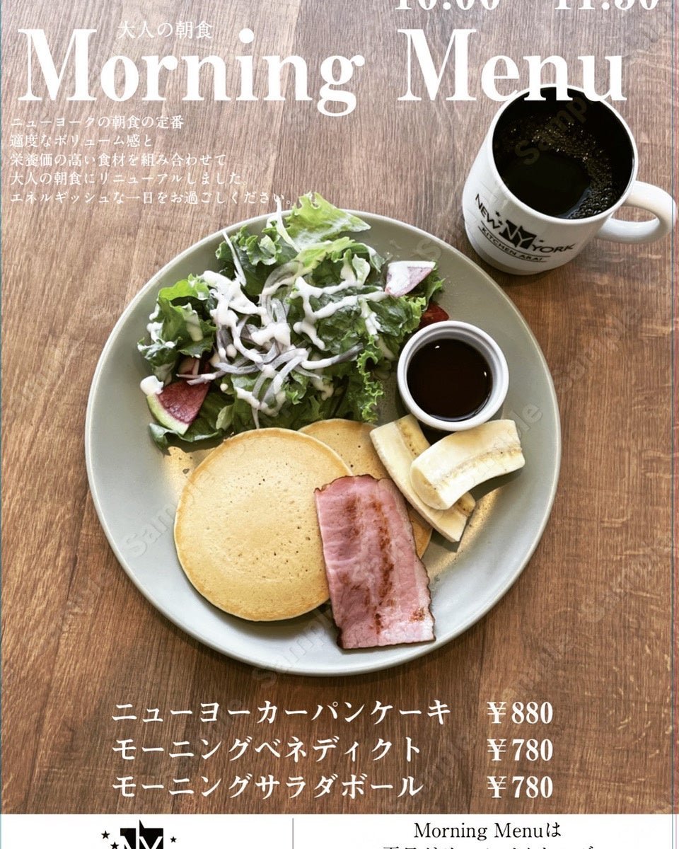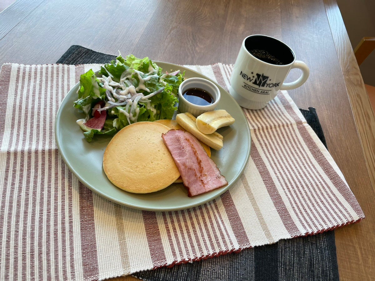 ニューヨークの朝食の定番パンケーキをご用意。適度なボリューム感と栄養価の高い食材を組み合わせて大人の朝食にリニューアルいたしました。