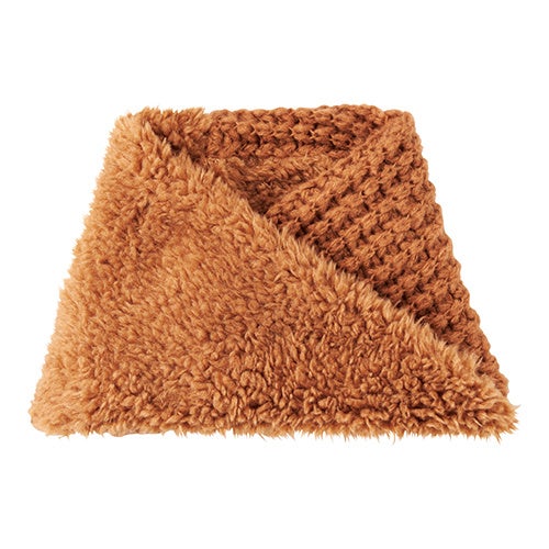 まるでトイプードルのような毛並みがたまらないスヌード。ふわふわな毛が寒い空気から首元をしっかりと守ります。輪になっているタイプなので頭からかぶるだけの簡単装着。手洗い可能。