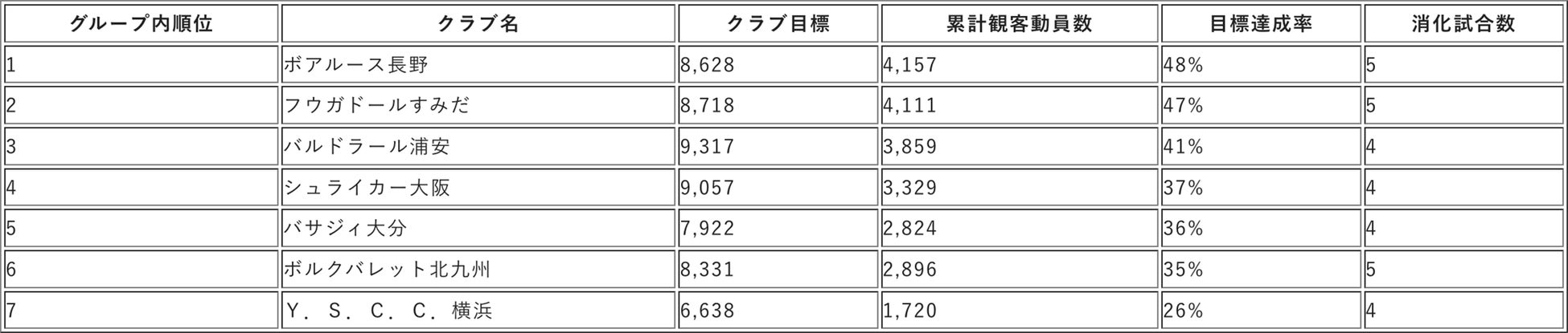 ■クラブ別観客動員数順位 ※8月3日時点