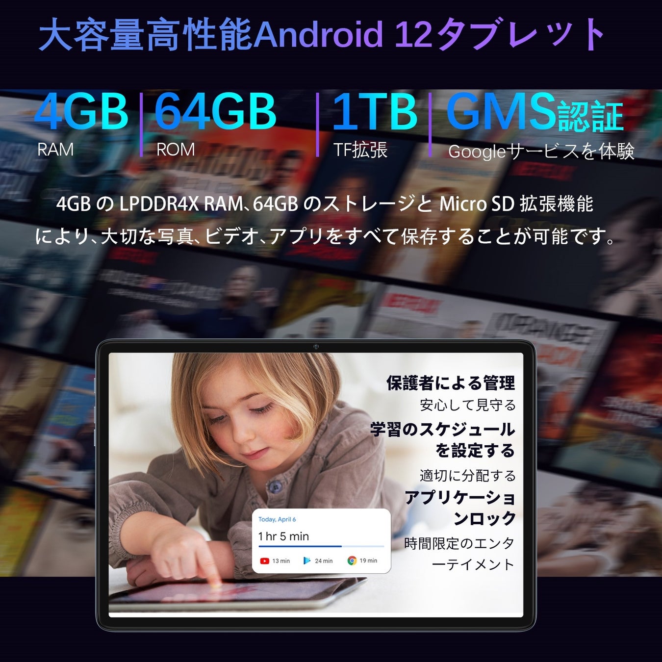 また、Google の GMS 認定を受けているため、プリインストールされた Google Play ストアからお気に入りのすべてのアプリにアクセスできます。 また、画面分割機能対応やデバイスコントロール、画面収録などの新機能により、タブレット操作がよりスムーズに。