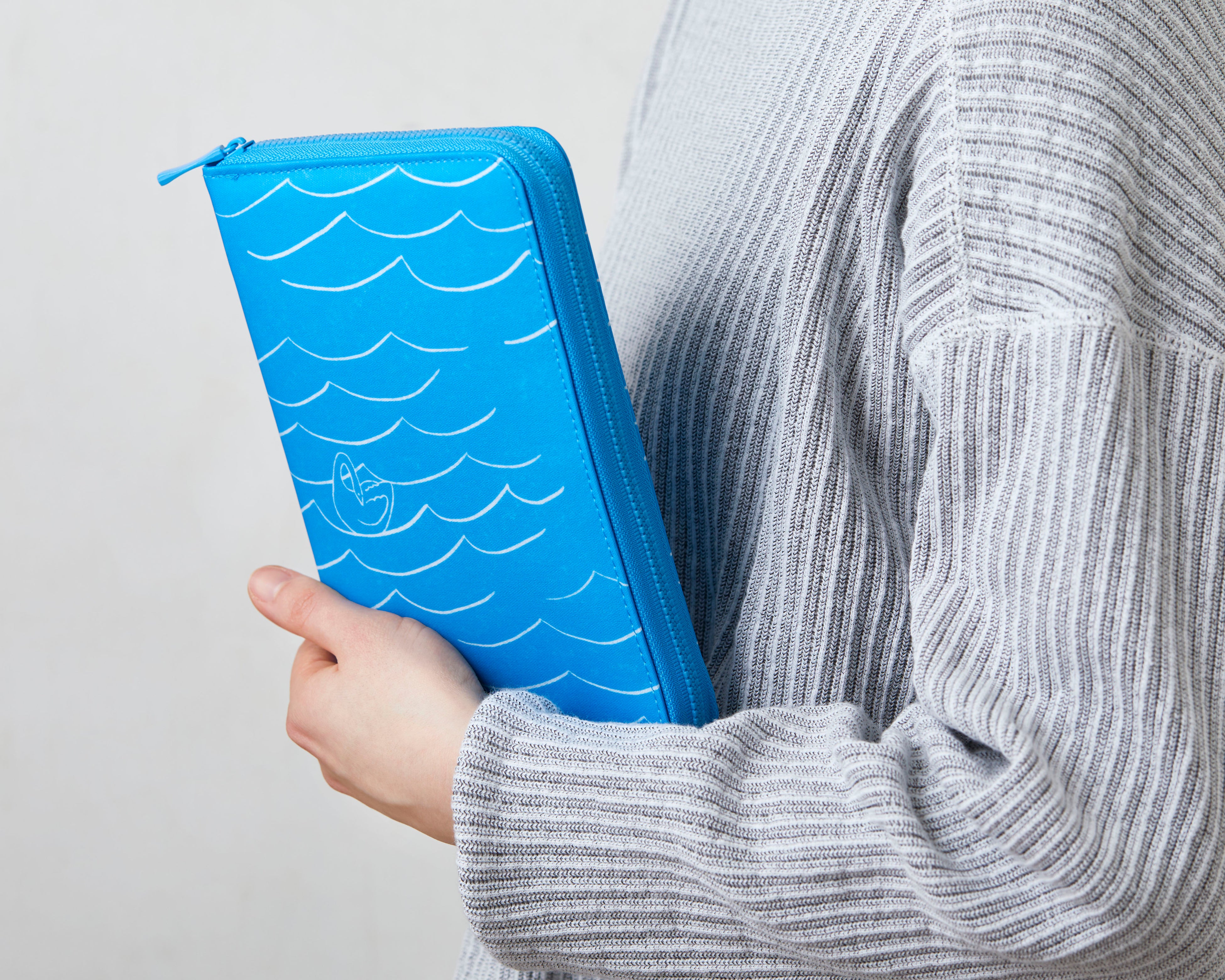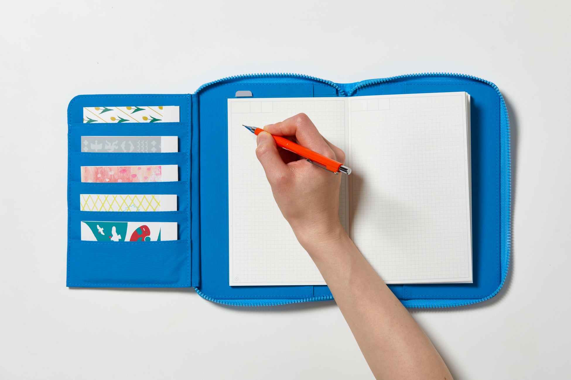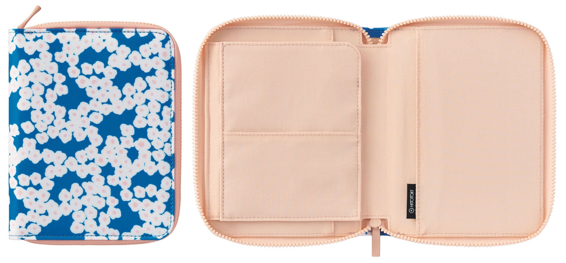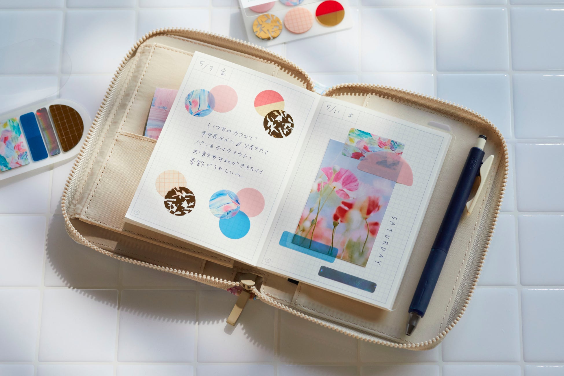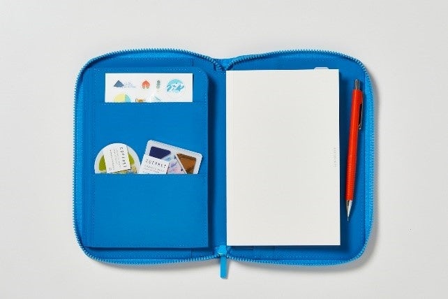 今回、新たに追加されるラウンドジップタイプはファスナーで開閉でき、カバーの内側にシールなどの⼿帳グッズをたっぷり収納できるフラップポケットが付いていて、ノートと手帳グッズを一緒に持ち運べるのが特長です。カバーは布製で軽く、キズや汚れがつきにくい素材を採用し、プラスチックファスナーで開閉しやすい仕様です。ラインアップは「パスポートサイズ」と「コミックサイズ」で各5種類、合計10種類です。
