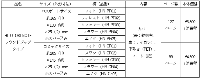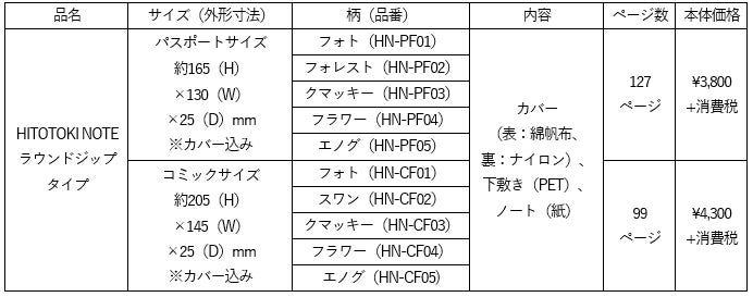 シリーズ初 布製カバーのラウンドジップタイプが登場!「HITOTOKI NOTE(ヒトトキノート)」に新ラインアップを追加