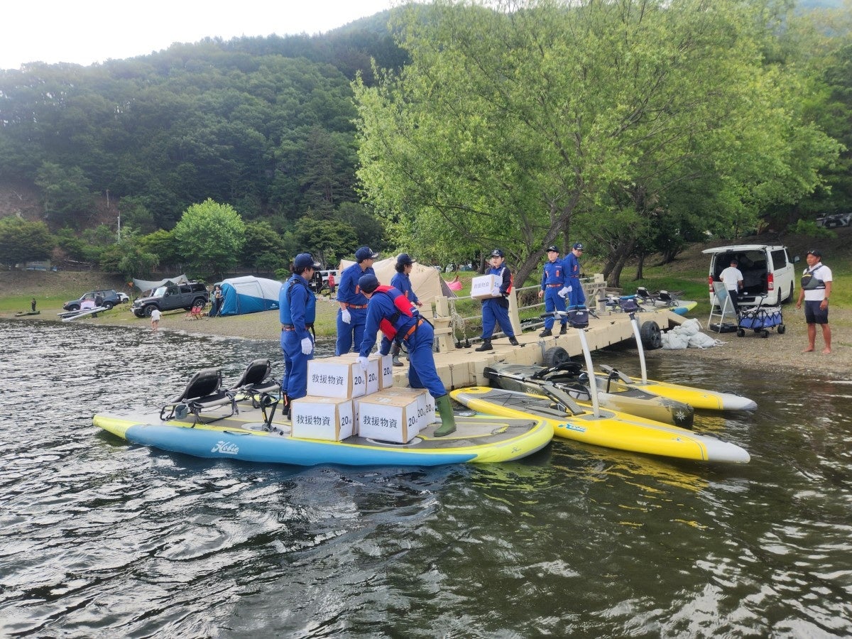 本年6月にはHOBIEを活用して地元消防団と連携した物資運搬訓練を実施いたしました。訓練で使用した4人乗りの大型足漕ぎボード「ITREK FIESTA(アイトレック・フィエスタ)」は、面積が9.27㎡で、最大搭載重量は453.6kg。物資運搬や人命輸送における利便性の高さを認識いただいております。