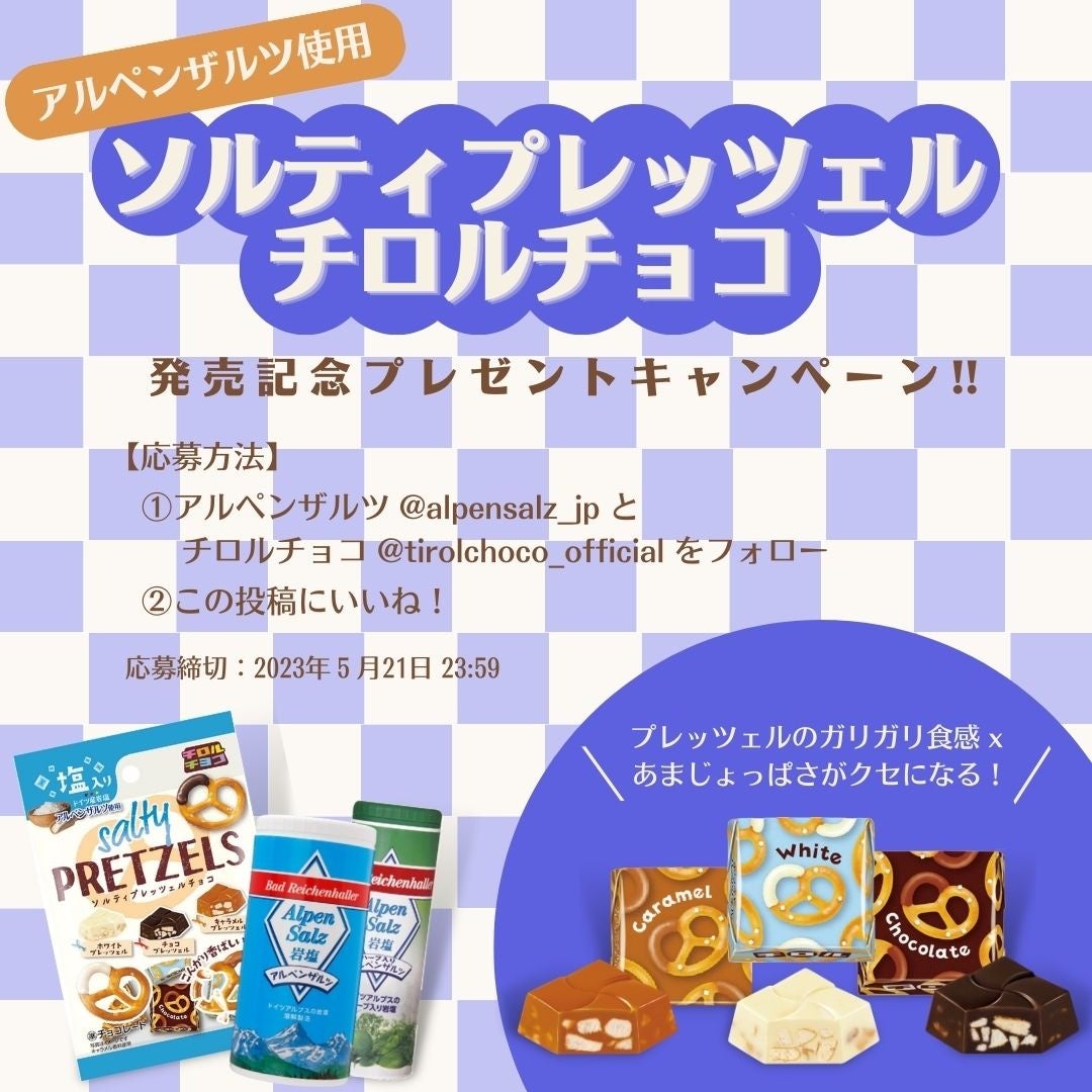 ①アルペンザルツ(@alpensalz_jp)とチロルチョコ(@tirolchoco_official)の2アカウントをフォロー