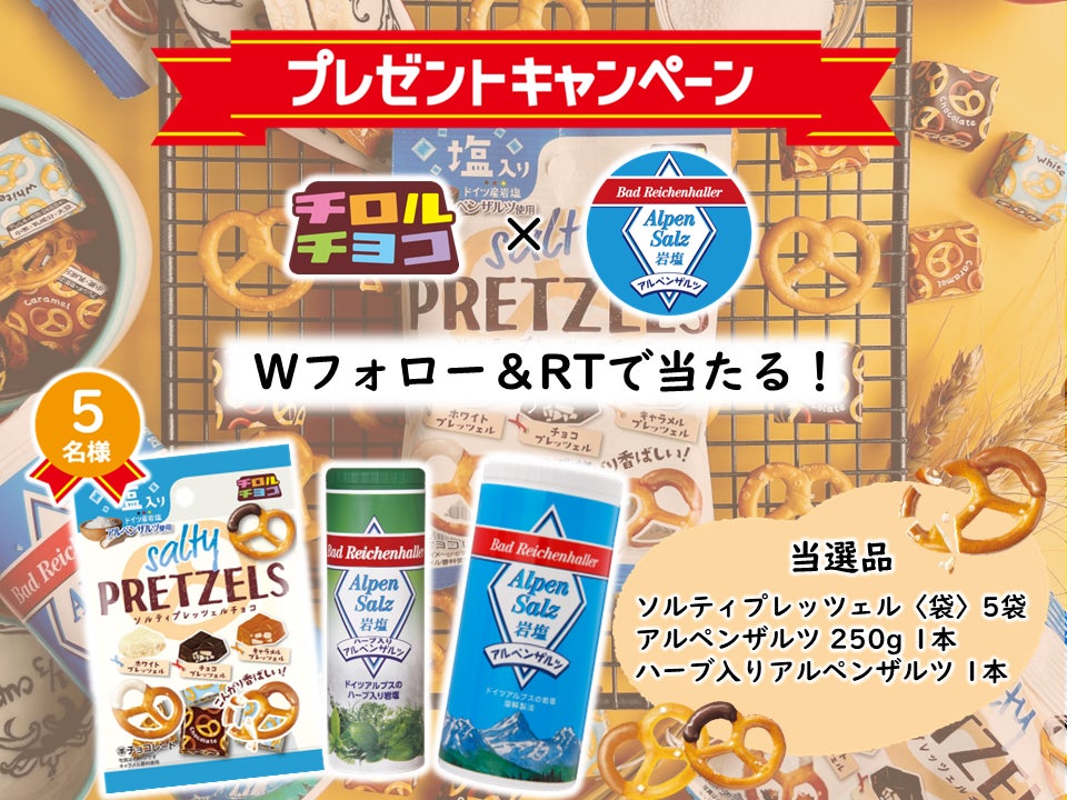 賞品内容:ソルティプレッツェル〈袋〉5袋、アルペンザルツ 250g 1本、ハーブ入りアルペンザルツ 1本