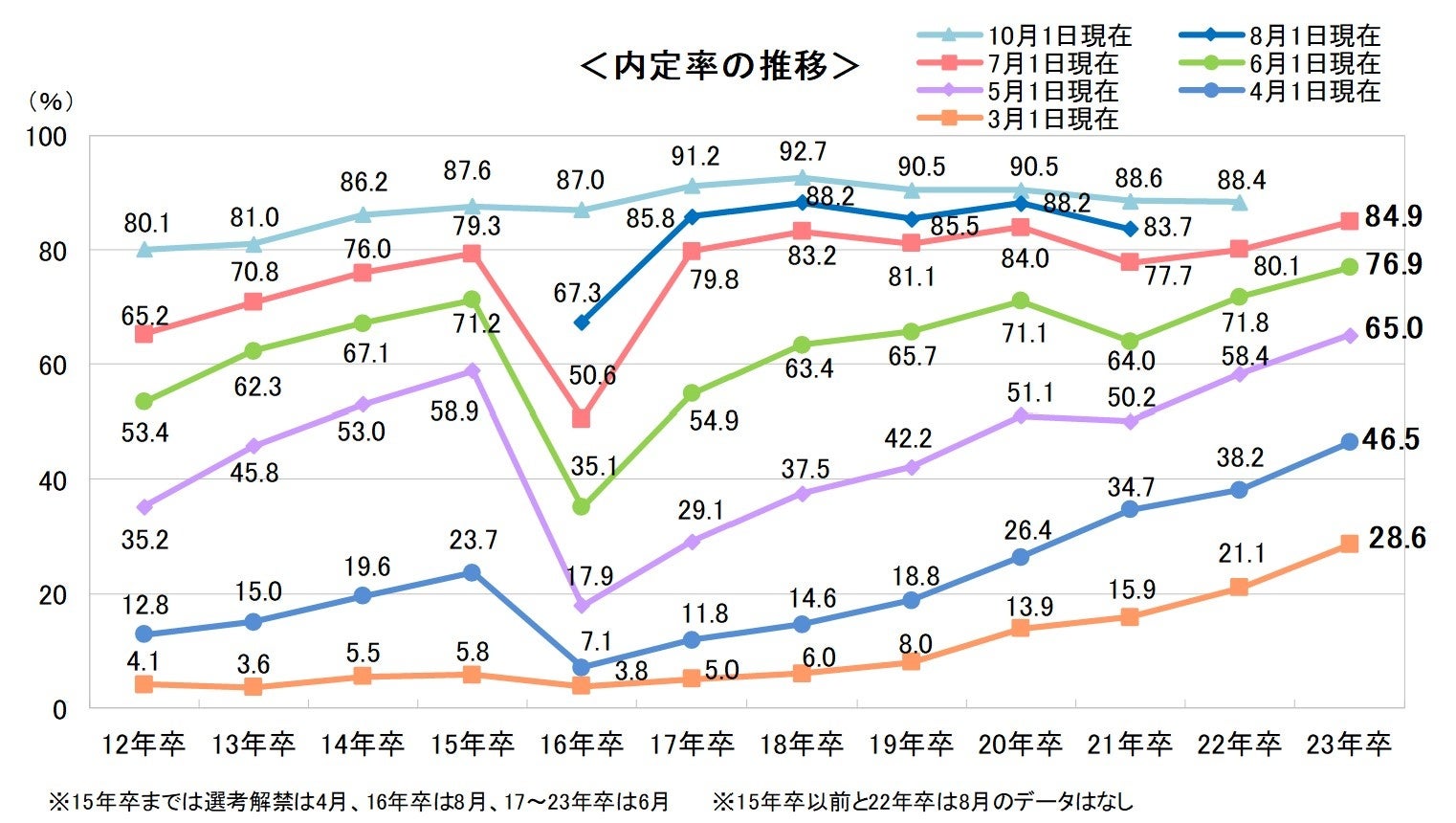 調査対象 : 2023年3月に卒業予定の大学4年生(理系は大学院修士課程2年生含む)