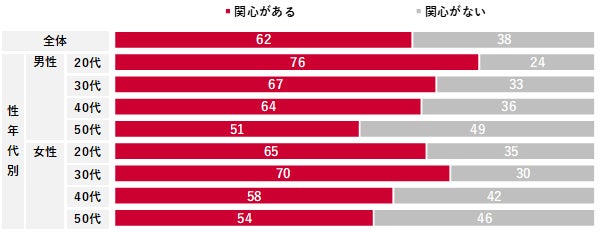 リスキリングへの興味・関心は62%と注目度の高さがうかがえる