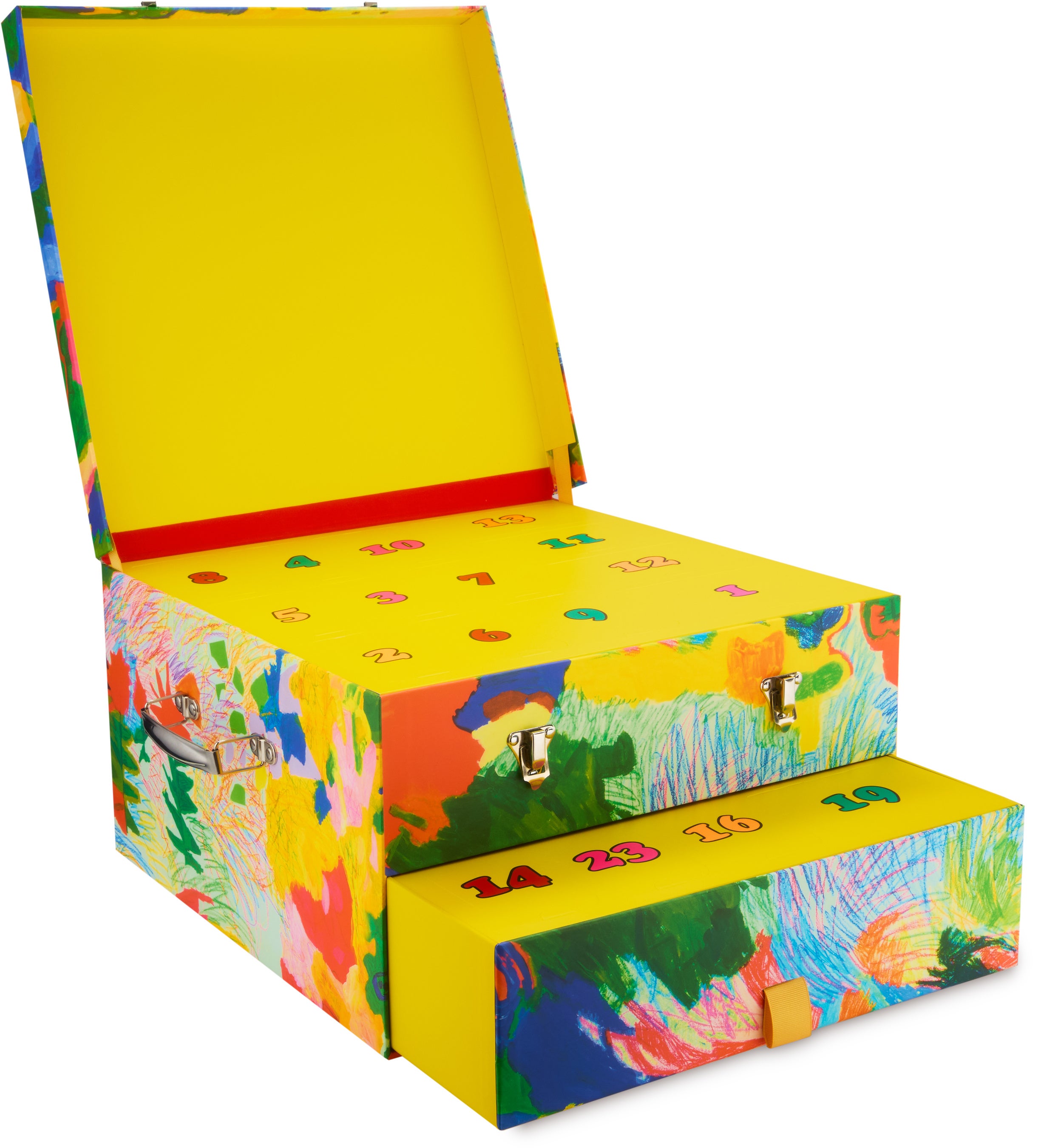 『LUSH アドベントカレンダー ギフト』のデザインは、ブルールーム※1のテス・ギルマーティンによるものです。彼女がアート制作で着想を得ているのは、自分を取り巻く世界。明るい色彩がいっぱいのパレットやジェスチャーに似たマークを使い、人間や動物、花々など、彼女が愛するものたちへの賛歌を表現しています。