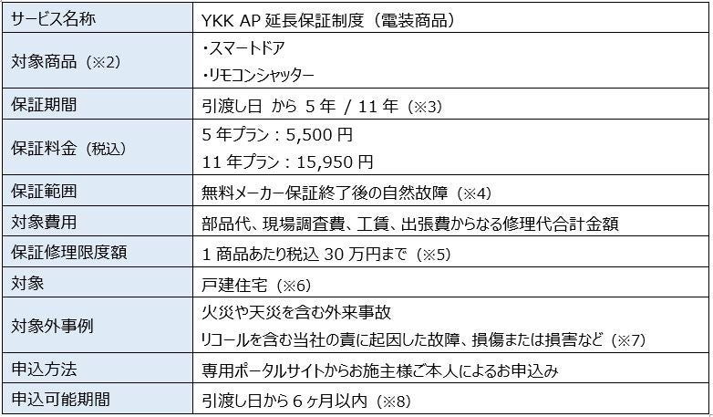 YKK AP株式会社 延長保証制度(電装商品)受付
