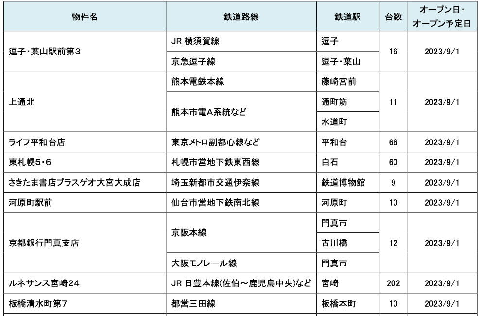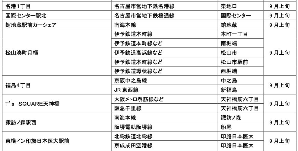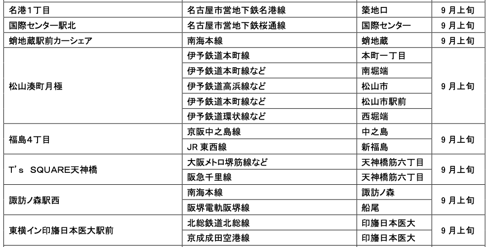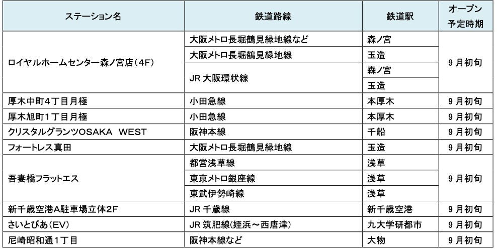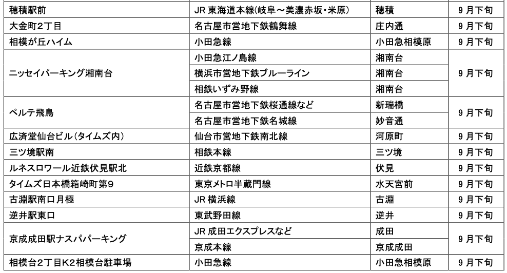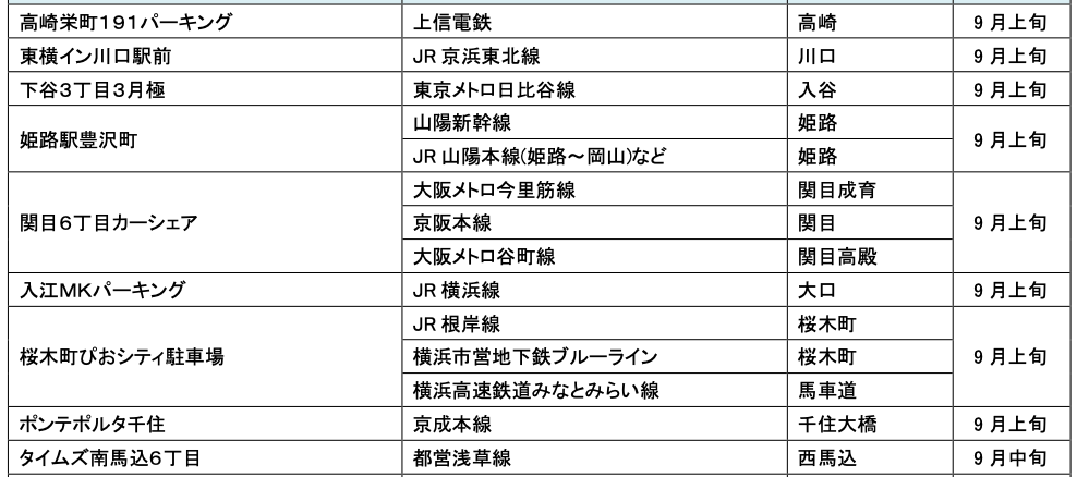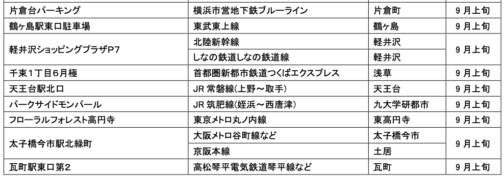 9月にオープンおよびオープン予定の「パーク&ライド」が可能な駐車場は21件、「レール&カーシェア」が可能なステーションは81件です。