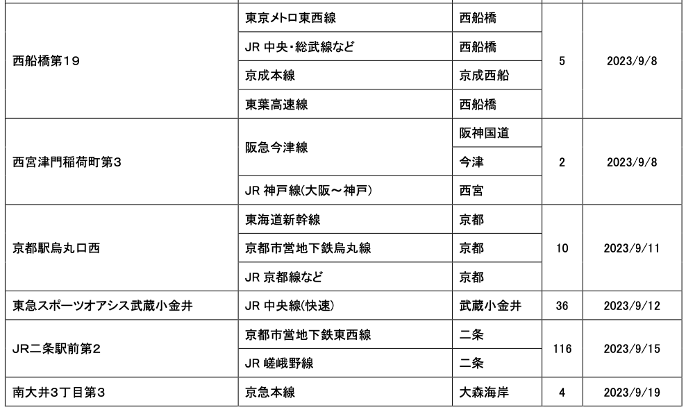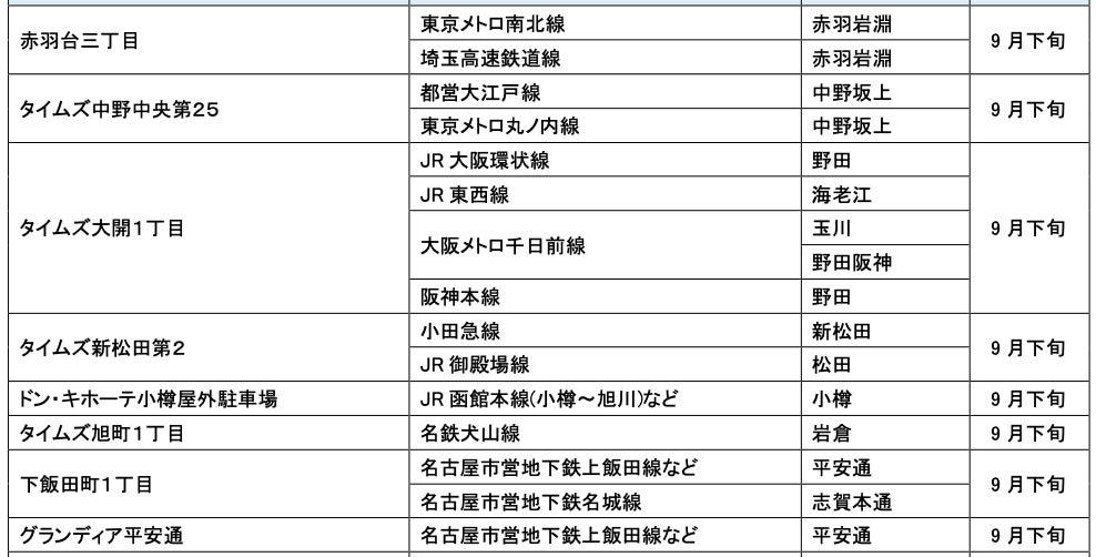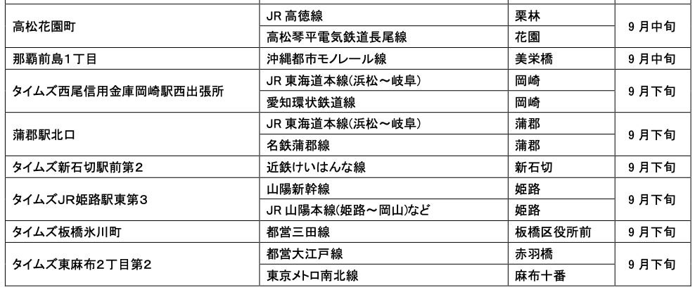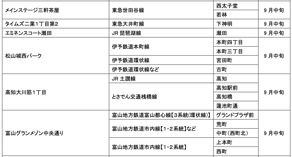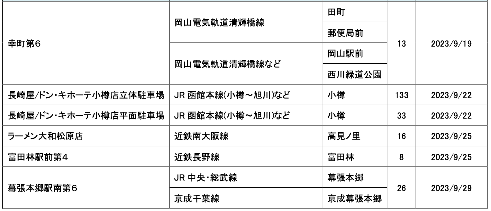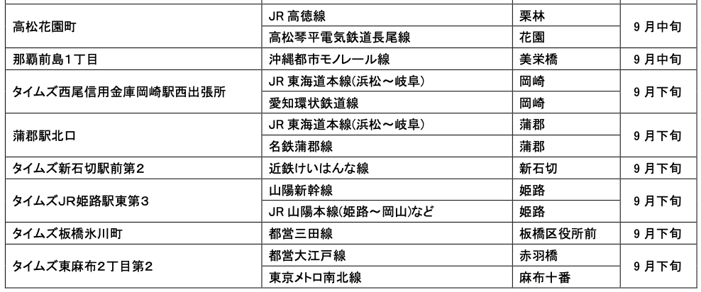 9月にオープンおよびオープン予定の「パーク&ライド」が可能な駐車場は21件、「レール&カーシェア」が可能なステーションは81件です。