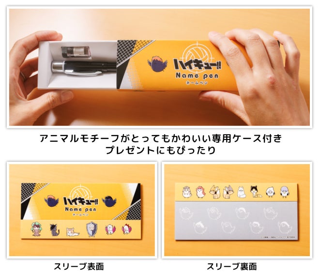 「アニマルモチーフネームペン」は、「ハイキュー!!」ファンにはたまらない、とってもかわいい専用パッケージに入れてお届け。「ハイキュー!!」好きなお友だちやお子さまへのプレゼントにもおすすめです。