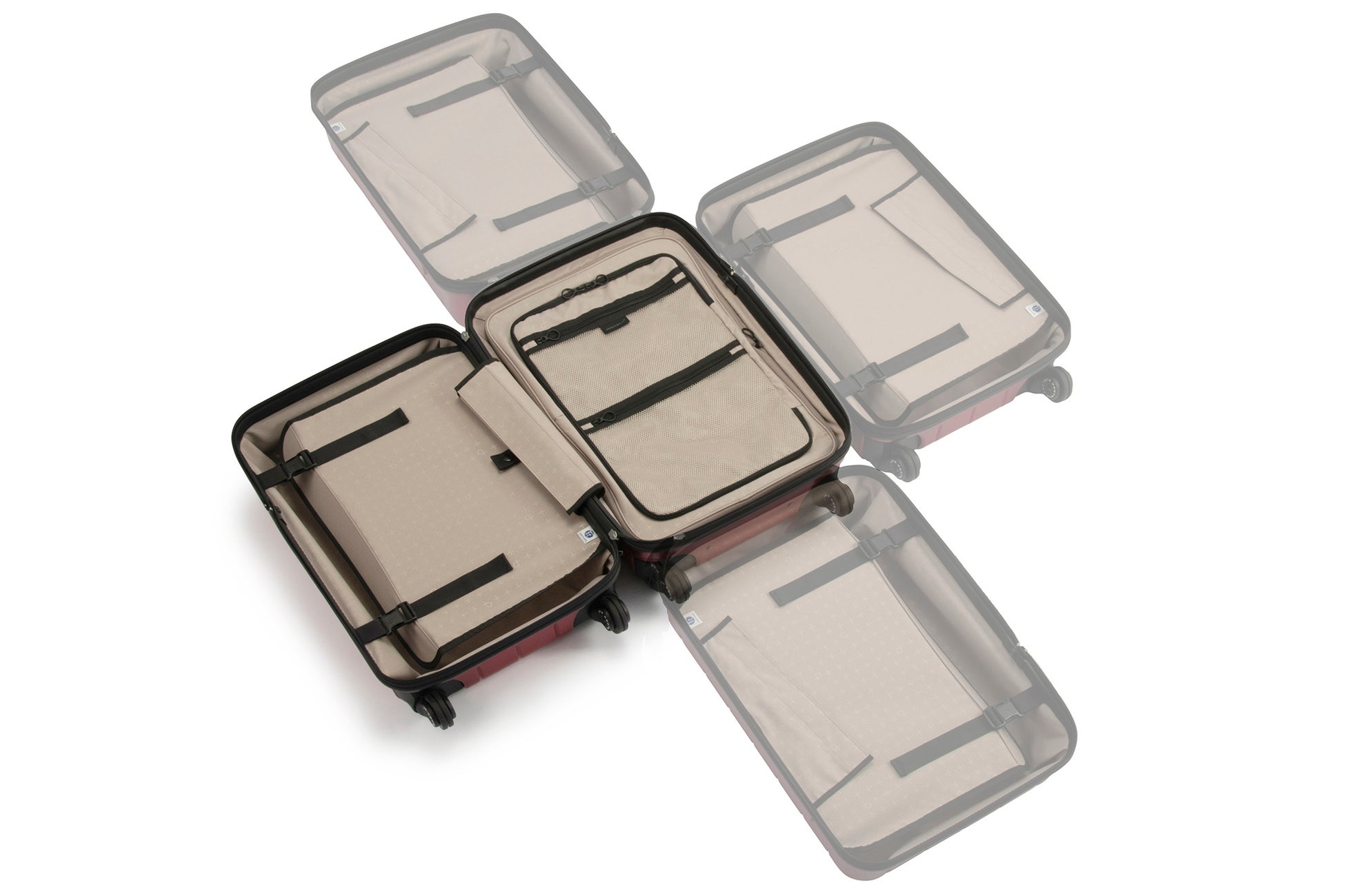 底側に荷物を集約する〈1気室〉と、蓋側と底側に分けて収納する〈2気室〉の、2通りの収納方法を使い分けることができます。蓋側に仕切りを、底側に拡張機能を搭載することで、容易に内装空間を切り替えられます。
