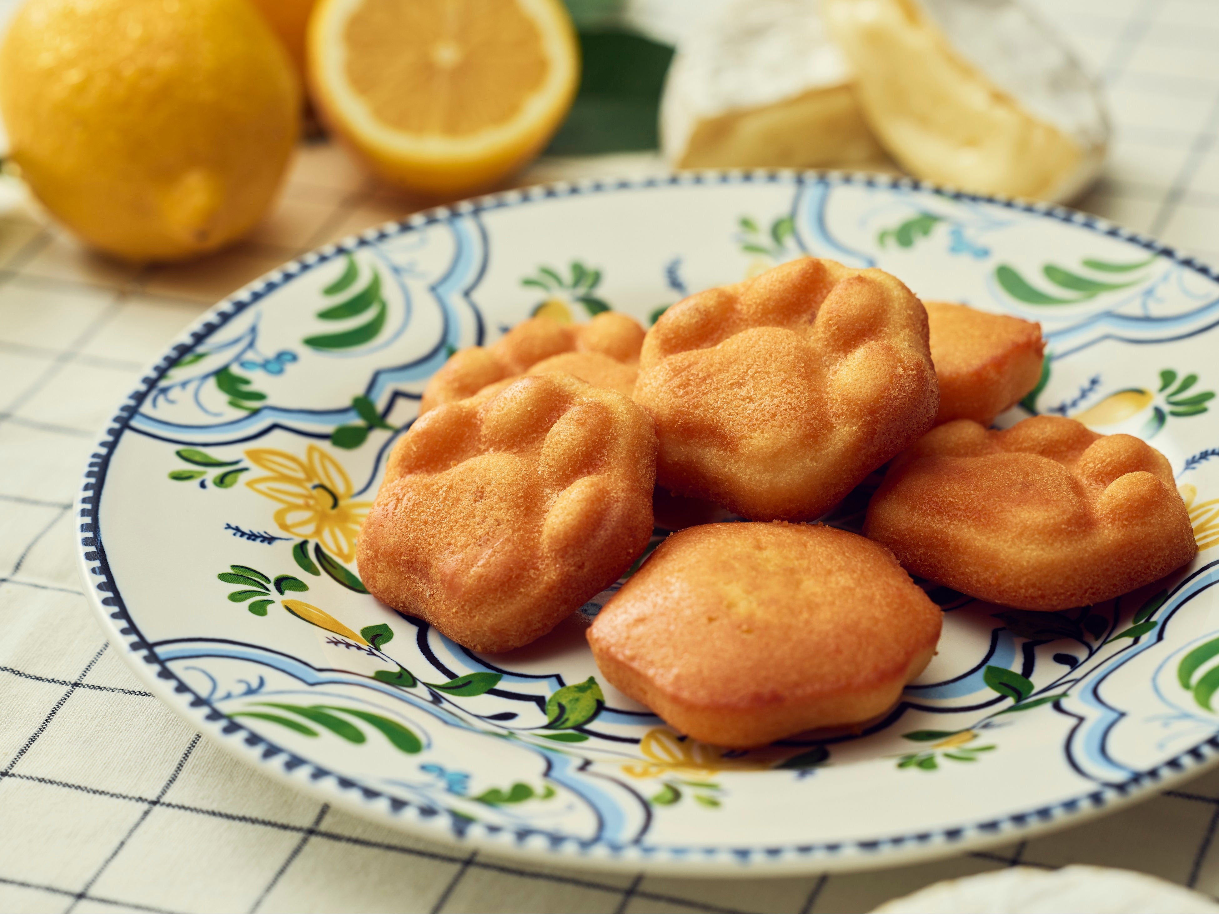 カマンベールを練り込んだ薫り豊かなフィナンシェに、レモンピールを加え爽やかに仕上げた自慢の一品。ひっくり返せば、なんと!ネコシェフ印の肉球型!?