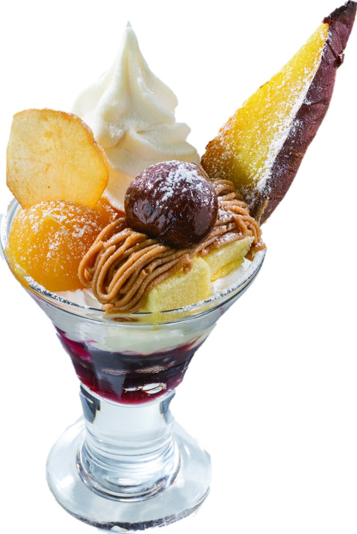 ソフトクリーム・紅天使のひんやり焼き芋・紅天使あん・さつまいもチップス・渋皮マロン・イタリア栗のマロンクリーム・バニラ&キャラメルフレーバー・台湾カステラ・ ホイップクリーム・マスカルポーネクリーム・ミックスベリー・コーヒーゼリー