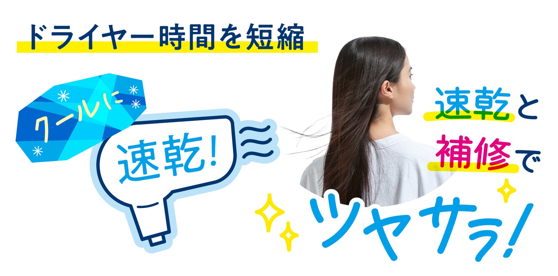 また、これまでの速乾アイテムは「早く乾くけれど、仕上がりのパサつきが気になる」という課題がありましたが、本商品ではケラチン*3、セラミド*4、植物オイル*5 などの髪の美容成分に加え、ドライヤーの熱を味方にするヒートケア成分*6 も配合。