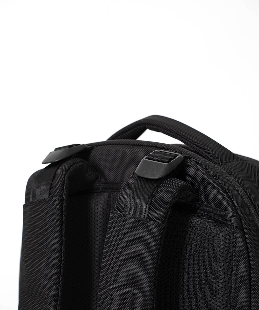 ショルダーハーネスの付け根には、登山用ザックでよく見られるロードリフトストラップを備えました。これによって肩付近に生じるバッグとの隙間を解消でき、荷重を正しく肩に乗せることで余計な疲れが生じません。