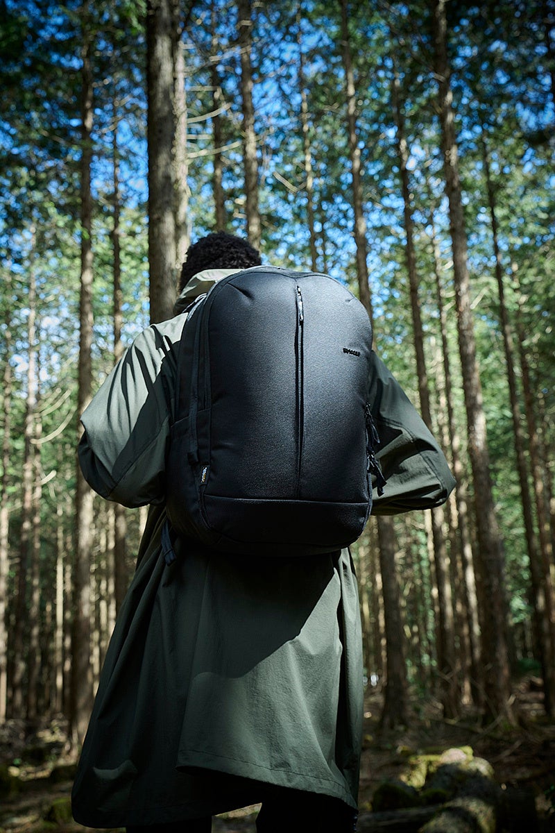 今回発売した「Tracks Backpack 18L」「Tracks Backpack 25L」は、MacBookやiPadといったデジタル機器を適切に持ち運べる収納構造によって都市生活にコミットするとともに、Incaseとして初めてコーデュラ®バリスティックナイロンを本体生地に使用し、行動中も荷物を出し入れしやすい縦型ジップの大型フロントポケットを採用するなど、屋外のフィールドにおける実用性も高めました。「Tracks」はテレワークやワーケーションなど多様化する働き方や、都市と郊外とをシームレスに行き来するスタイルにフィットし、ユーザーにとって最高の「キャリングソリューション」を提供します。