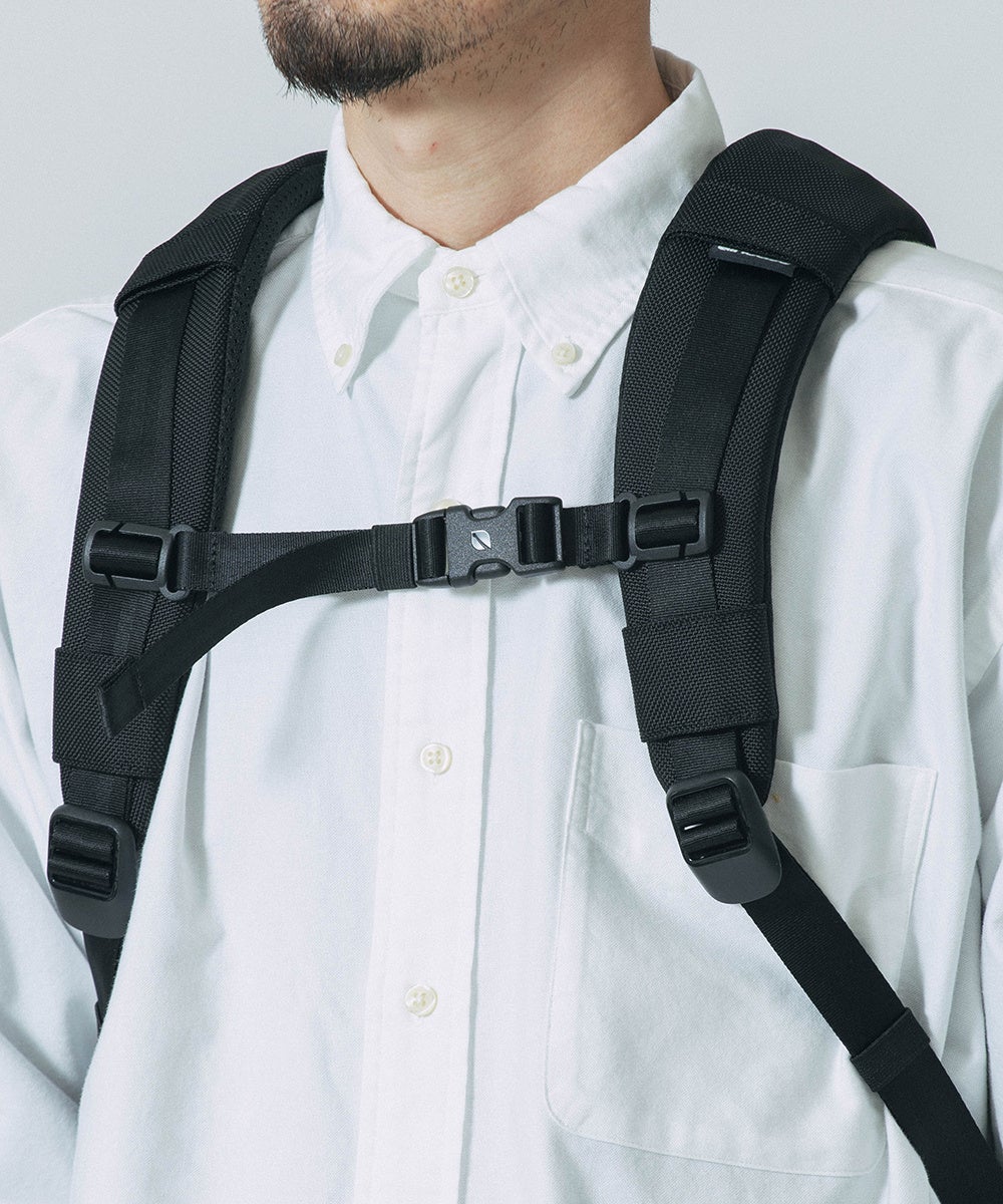 「Tracks Backpack 25L」にはチェストストラップも備え、ハーネスの固定によるバランス感の向上から肩への重量負荷を軽減します。