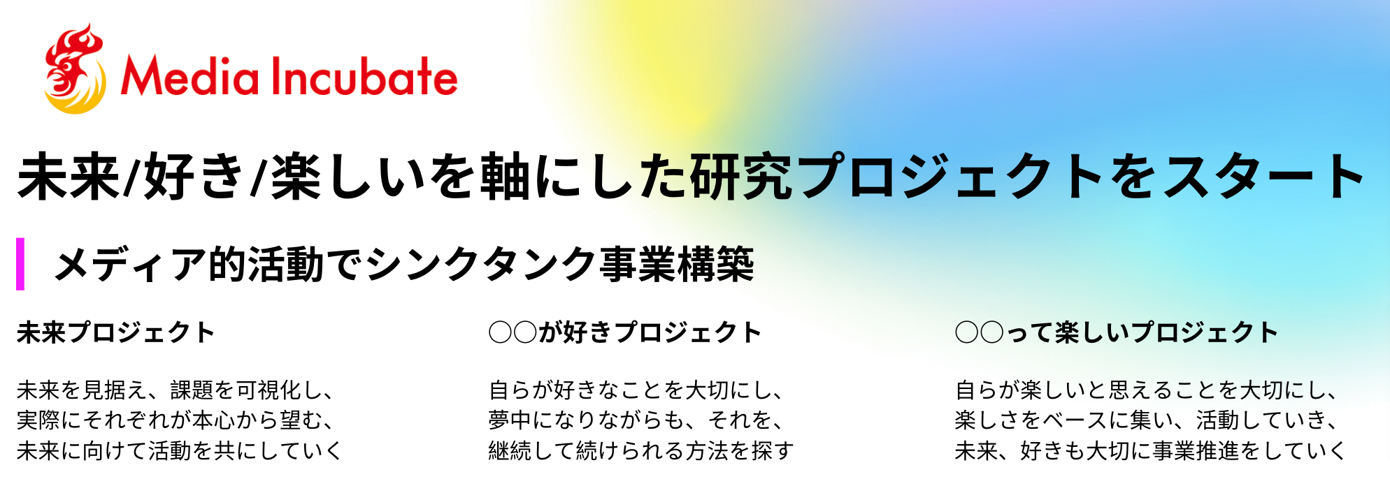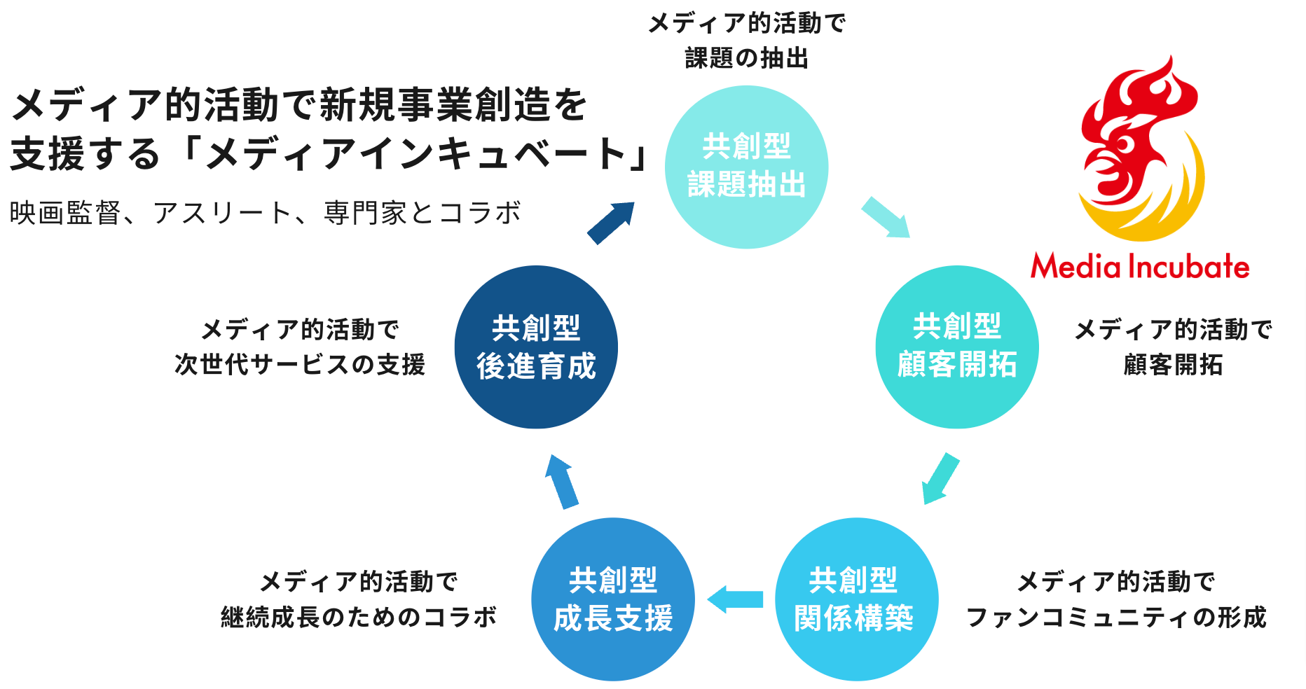 メディアインキュベートは、メディアを強みに、企業課題、事業課題、社会課題の解決に取り組んでいます。