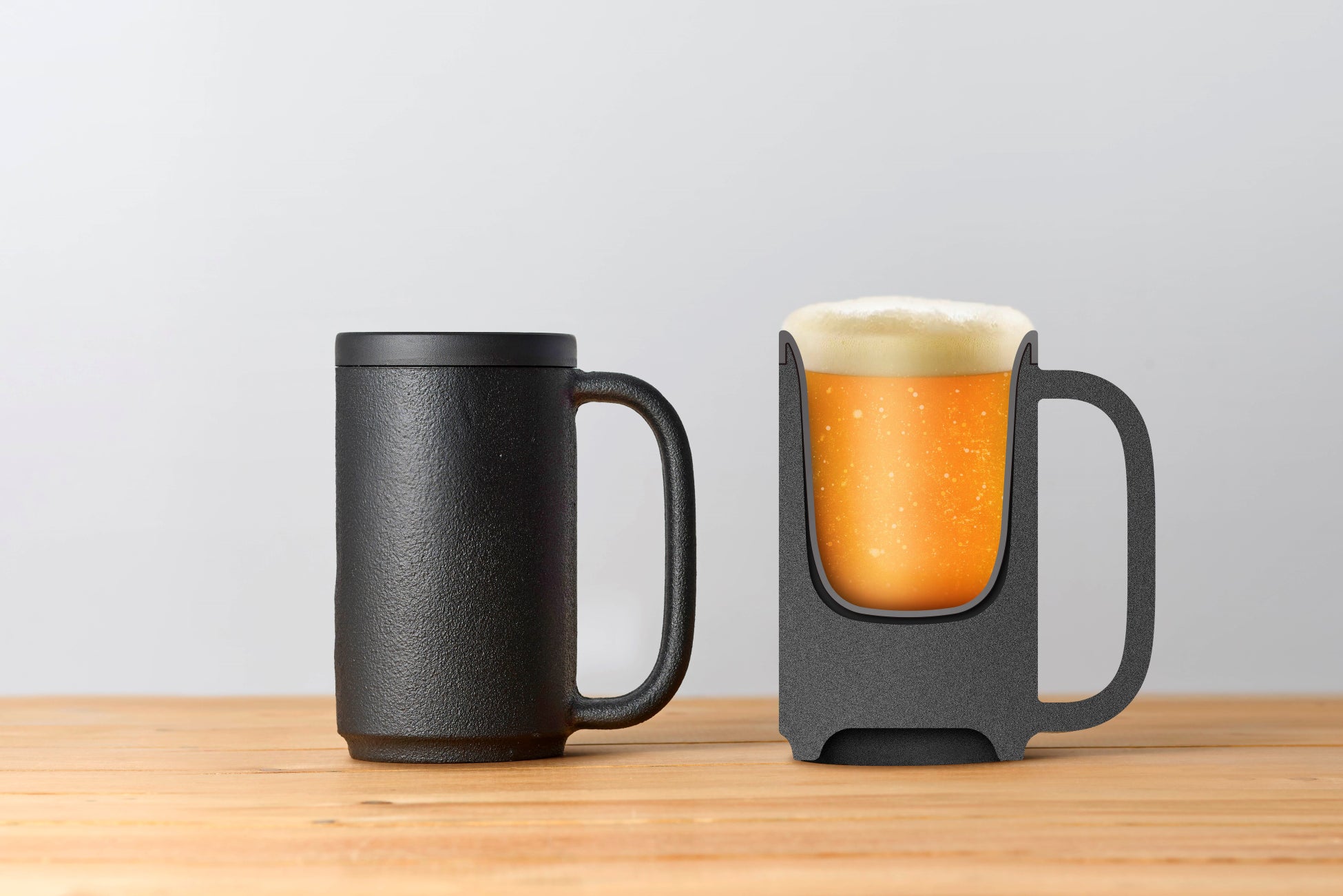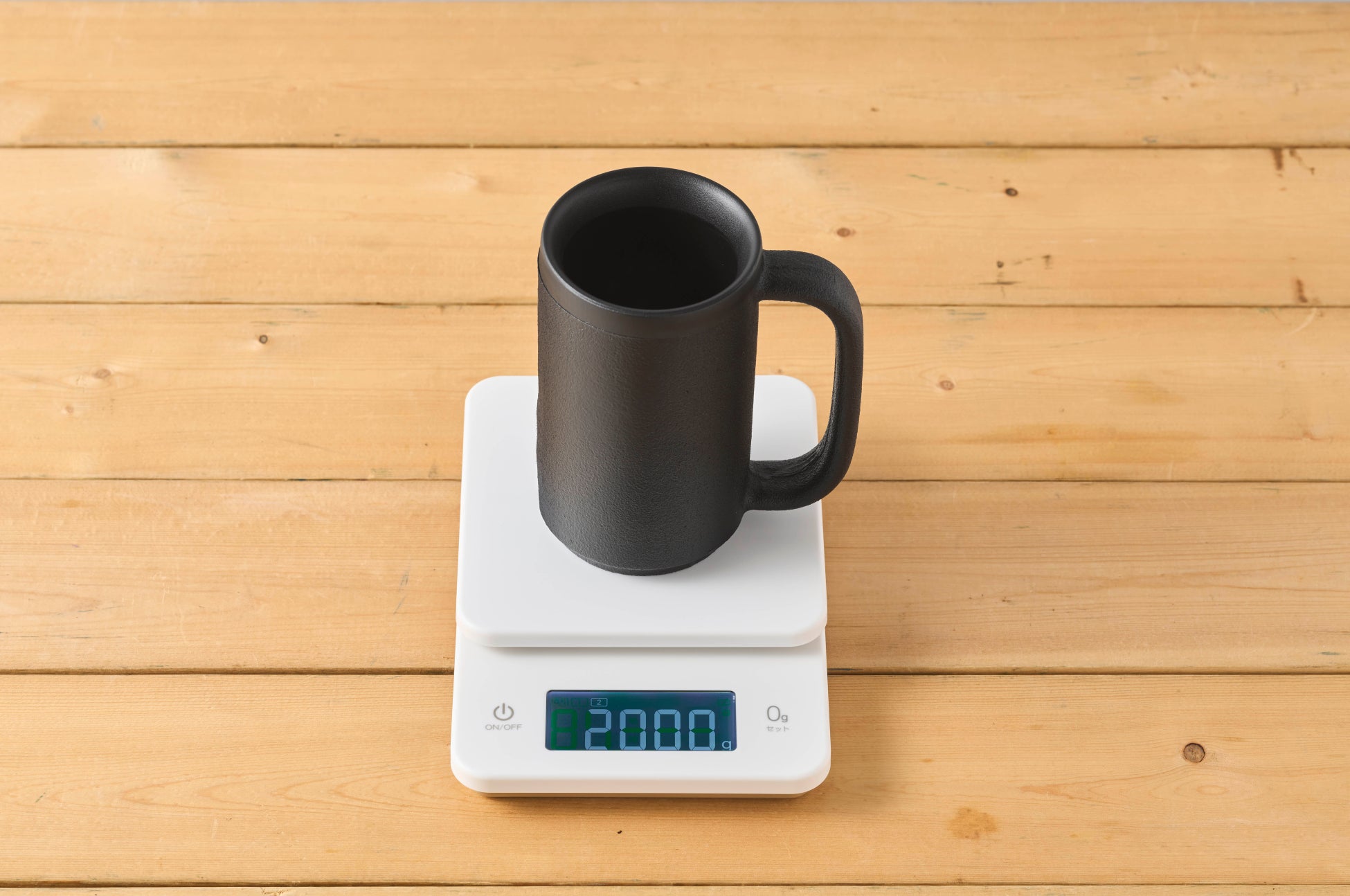 本製品は本体をスチール(鉄鋼)にすることで、高さ約12cmとコンパクトサイズながら、約2kgとこのサイズのジョッキではあり得ない重さに仕上げました。口に運ぶのが億劫になるため、飲みすぎを防ぎます。また、非常に重いため、飲みながら筋力トレーニング効果も期待できます。