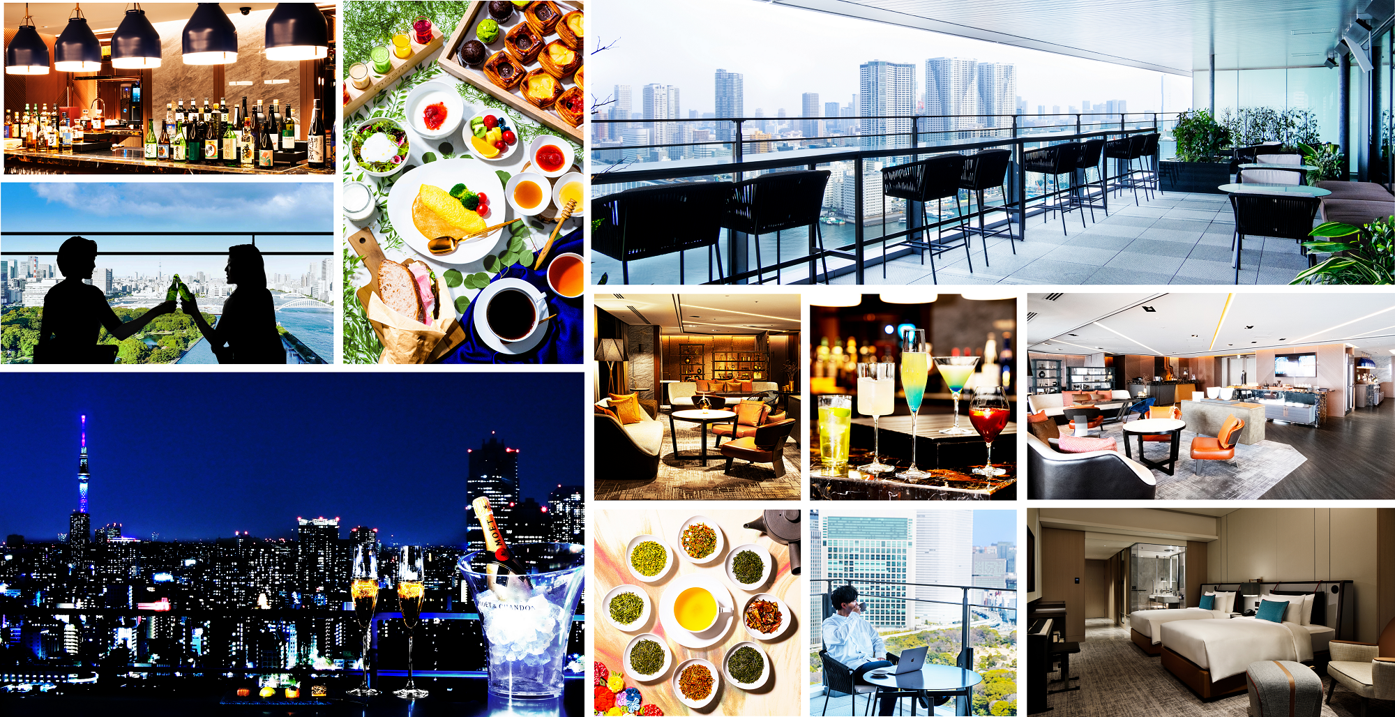 開放的なテラスから臨むベイエリアの美しい眺望と、さらにワンランク上の日本の「美」を感じていただける洗練された空間をご提供するプライベートサロン「クラブメズム」。ご滞在中に「クラブメズム」がご利用可能で、一部ビバレッジメニューをフリーフローでお楽しみいただけます。四季折々の豊かな表情を見せる浜離宮恩賜庭園や隅田川の流れが紡ぐ江戸情緒、東京都心の躍動感と煌めきが織りなす独特のコントラストとともに、インスピレーション溢れるひとときをご満喫ください。