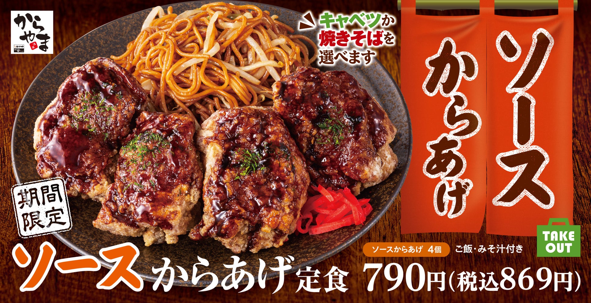 【春の行楽シーズン限定】焼きそばとご一緒に!からあげ専門店からやまに「ソースからあげ」新登場