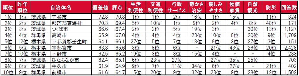- 街の住みここちランキング2022<北関東版>自治体TOP10 因子別順位