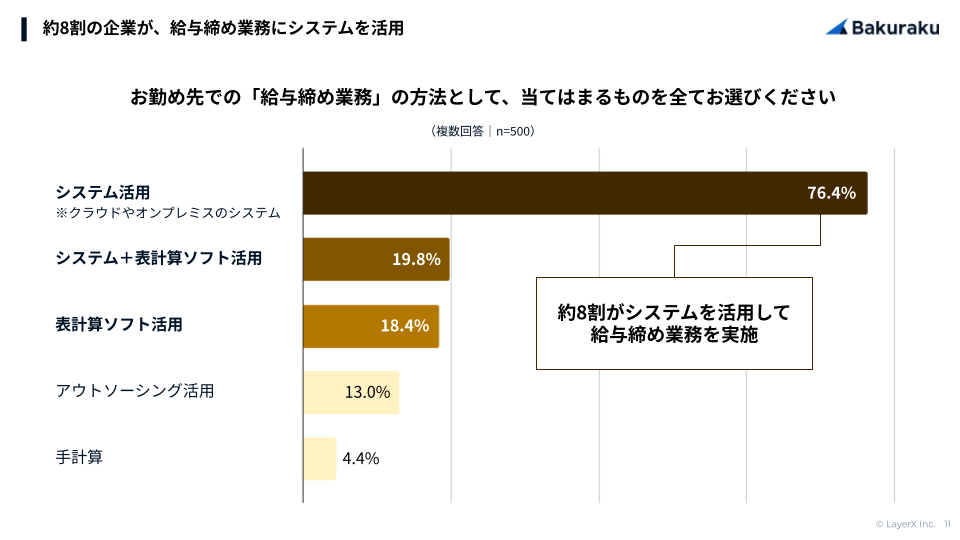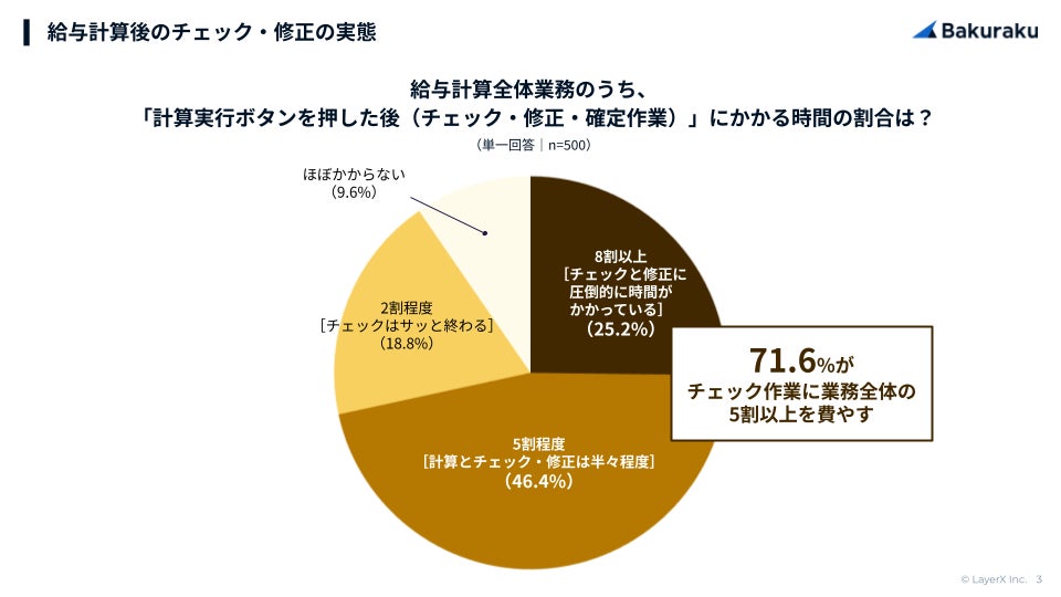 すべての経済活動のデジタル化を目指す株式会社LayerX(本社:東京都中央区、代表者:代表取締役CEO 福島良典、以下「LayerX」)は、企業の人事担当者500名を対象に、給与の締め業務に関する実態調査を実施しました。
