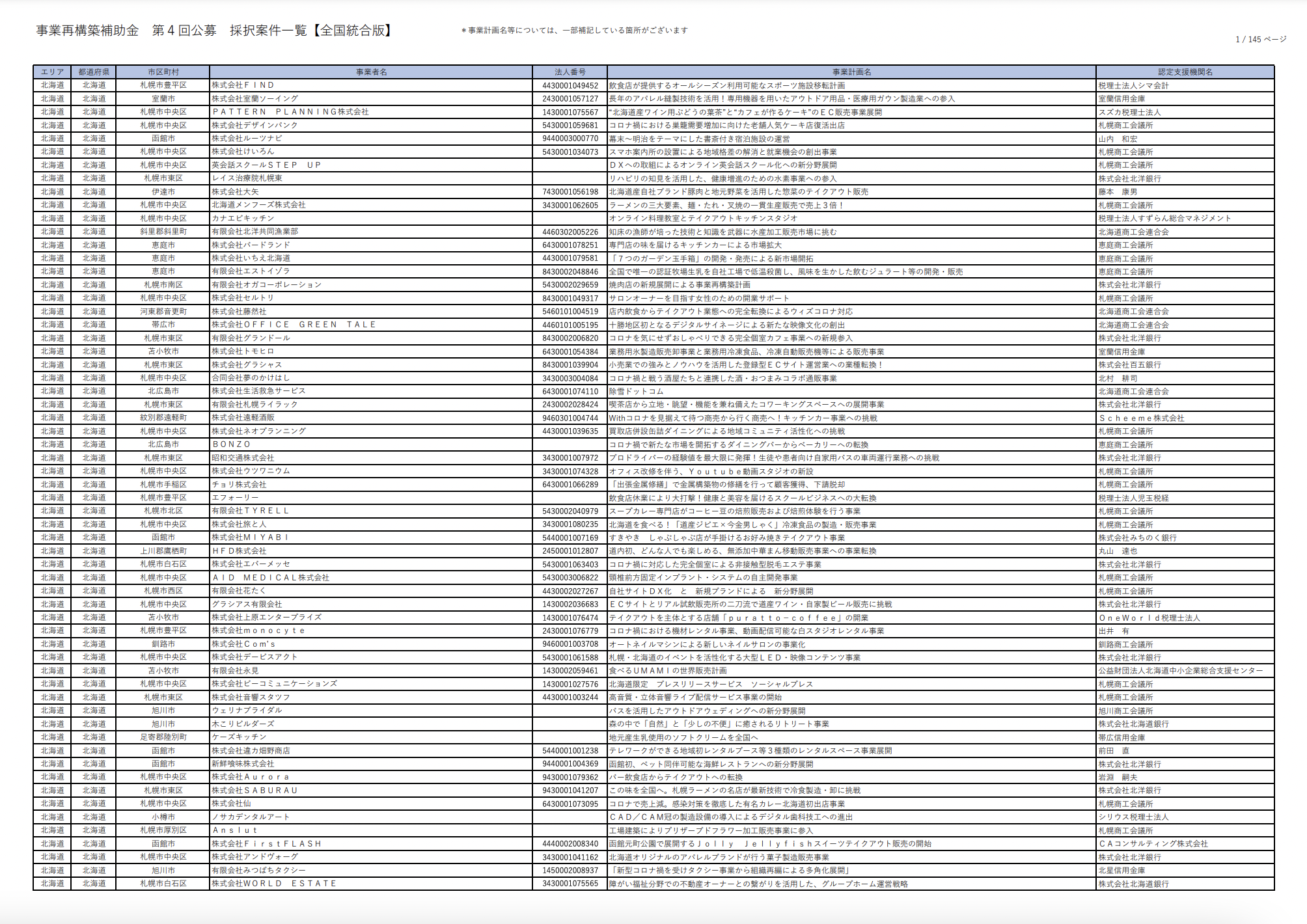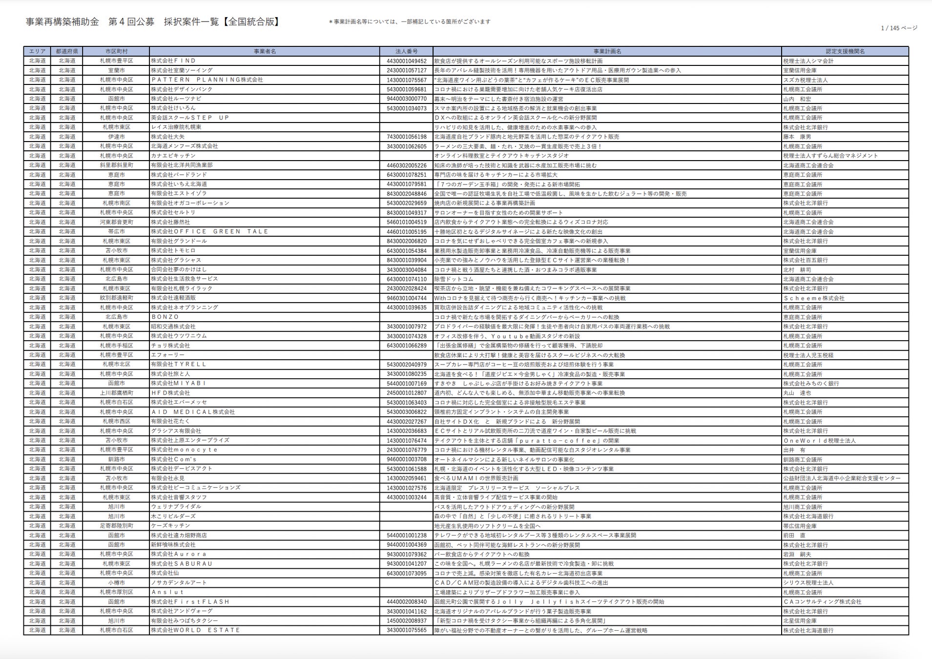 第4回公募の事業再構築補助金の採択結果一覧