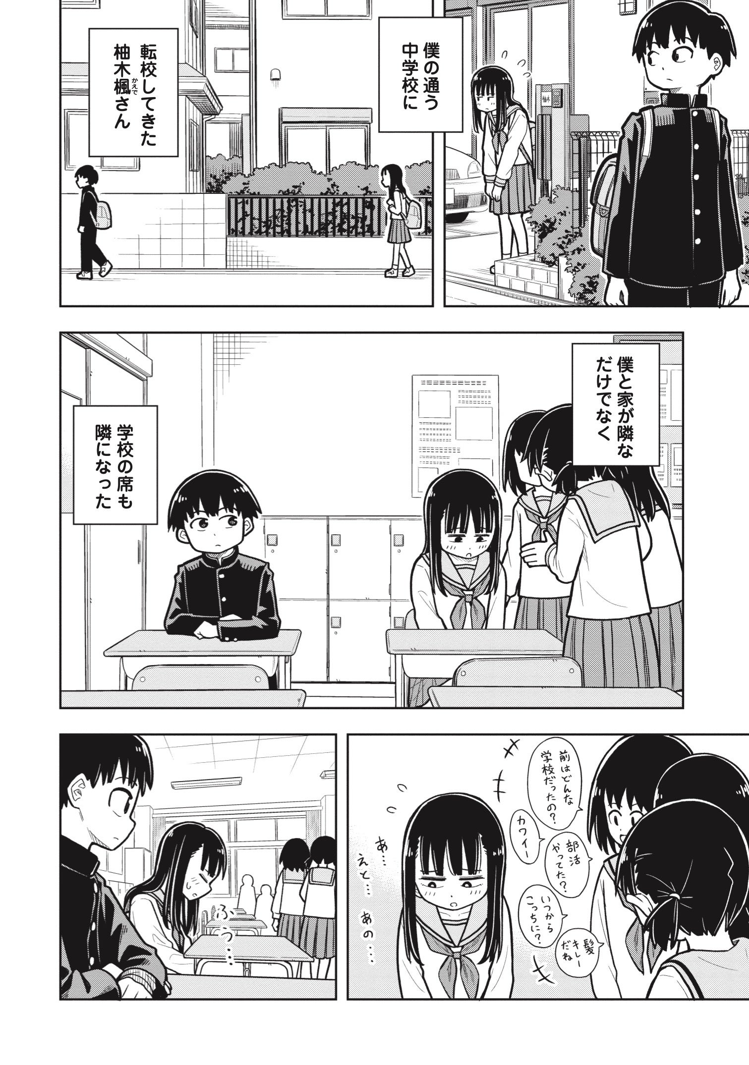 転校生の柚木楓と、家も学校の席も隣同士になった相田航平。仲良くなろうと話しかける航平だが会話が続かず…。一方、楓はこの隣同士という状況に──。