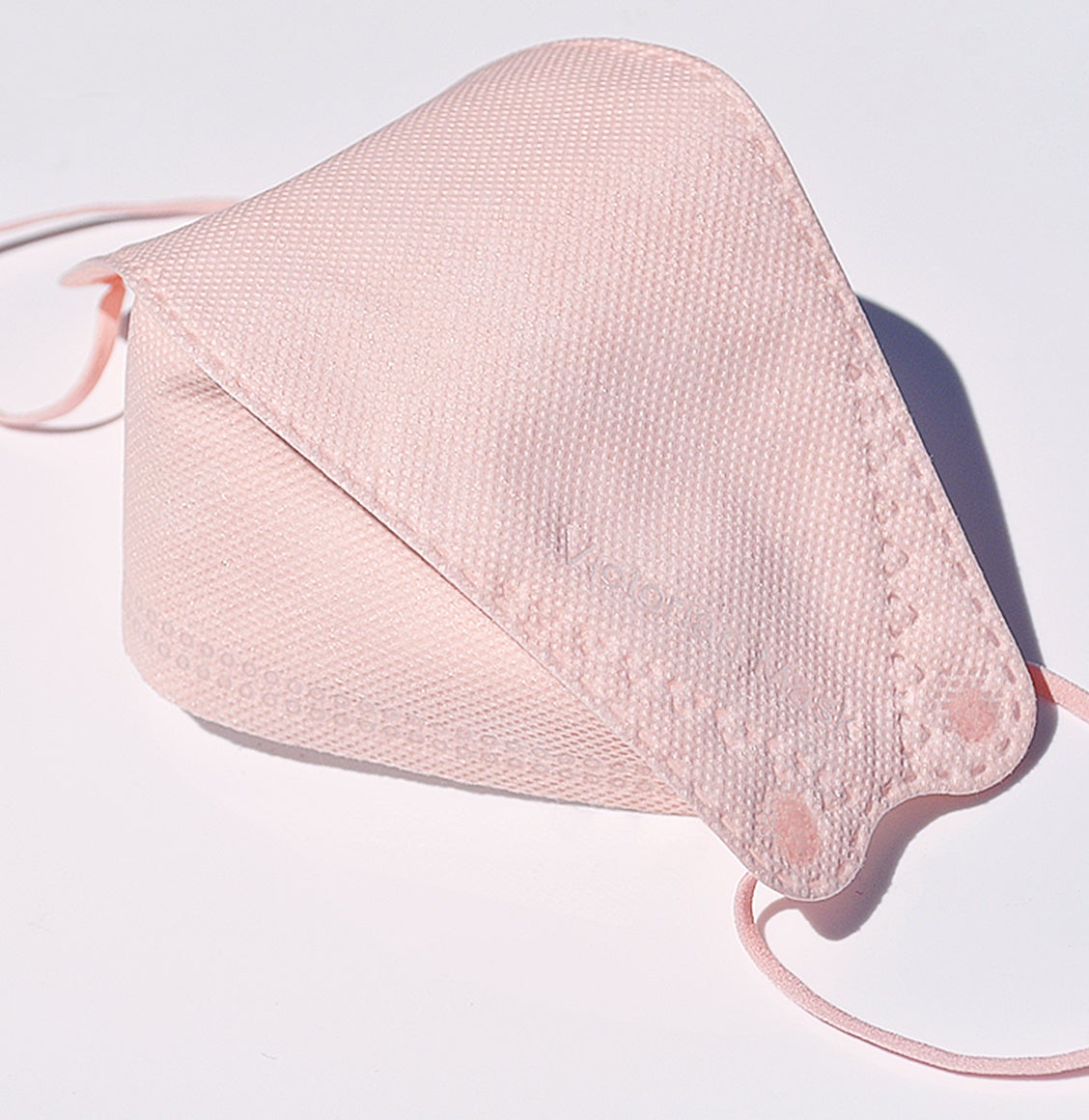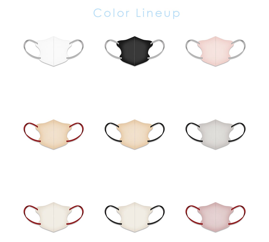 独自のダイヤモンド形状(3段形状)が口元に広い空間を作り出し、口紅やメイクが付きにくいほか、従来の不織布マスクよりも息がしやすい形状となっております。