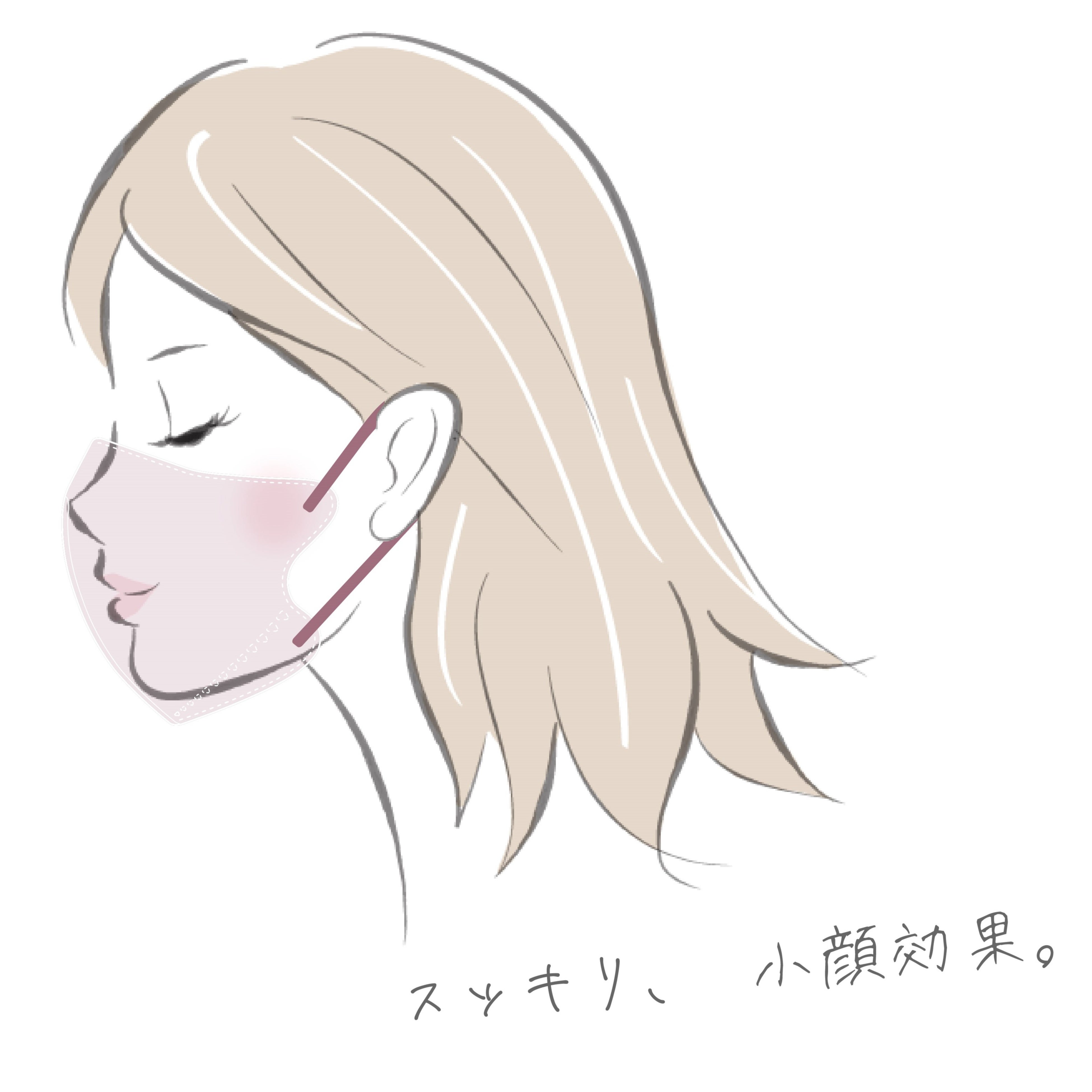 人体工学に基づいた設計により、一般的な不織布マスクと比較すると顔への密着性が高く、フェイスラインがすっきり見えます。