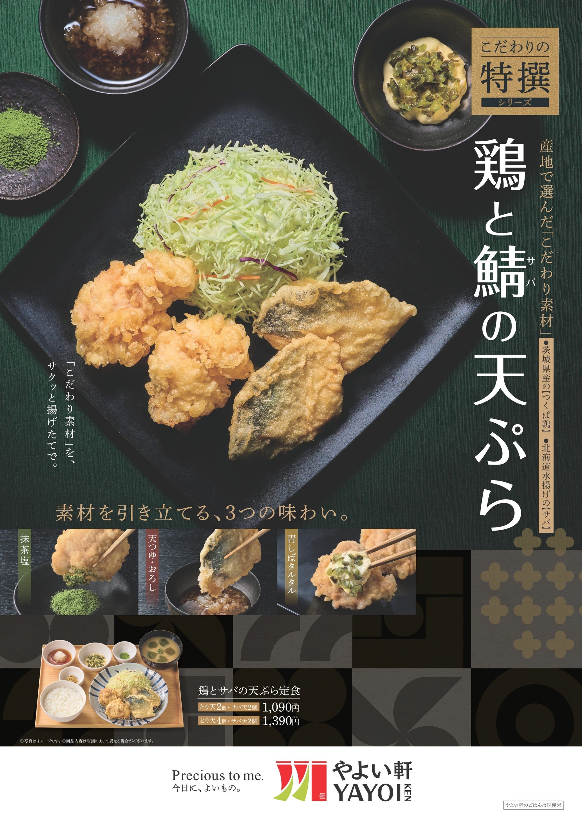 「やよい軒」全国の店長が選んだ、こだわりの特撰シリーズ『鶏とサバの天ぷら定食』おすすめポイント! 1位『とり天・サバ天の揚げたてを堪能できる』